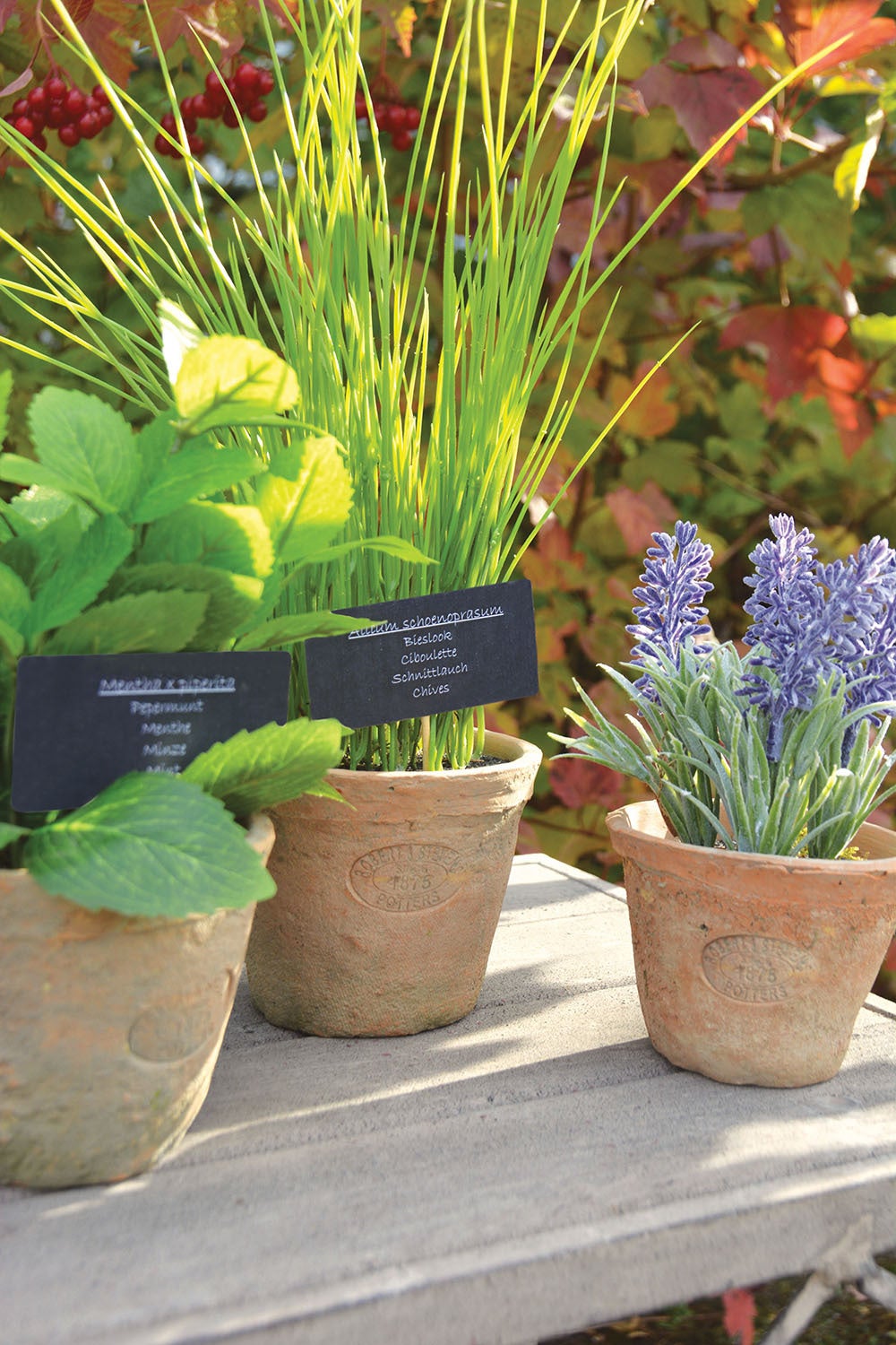 Decorative plastic Lavender. Terra cotta pot with a Robert Stevens & stamp.