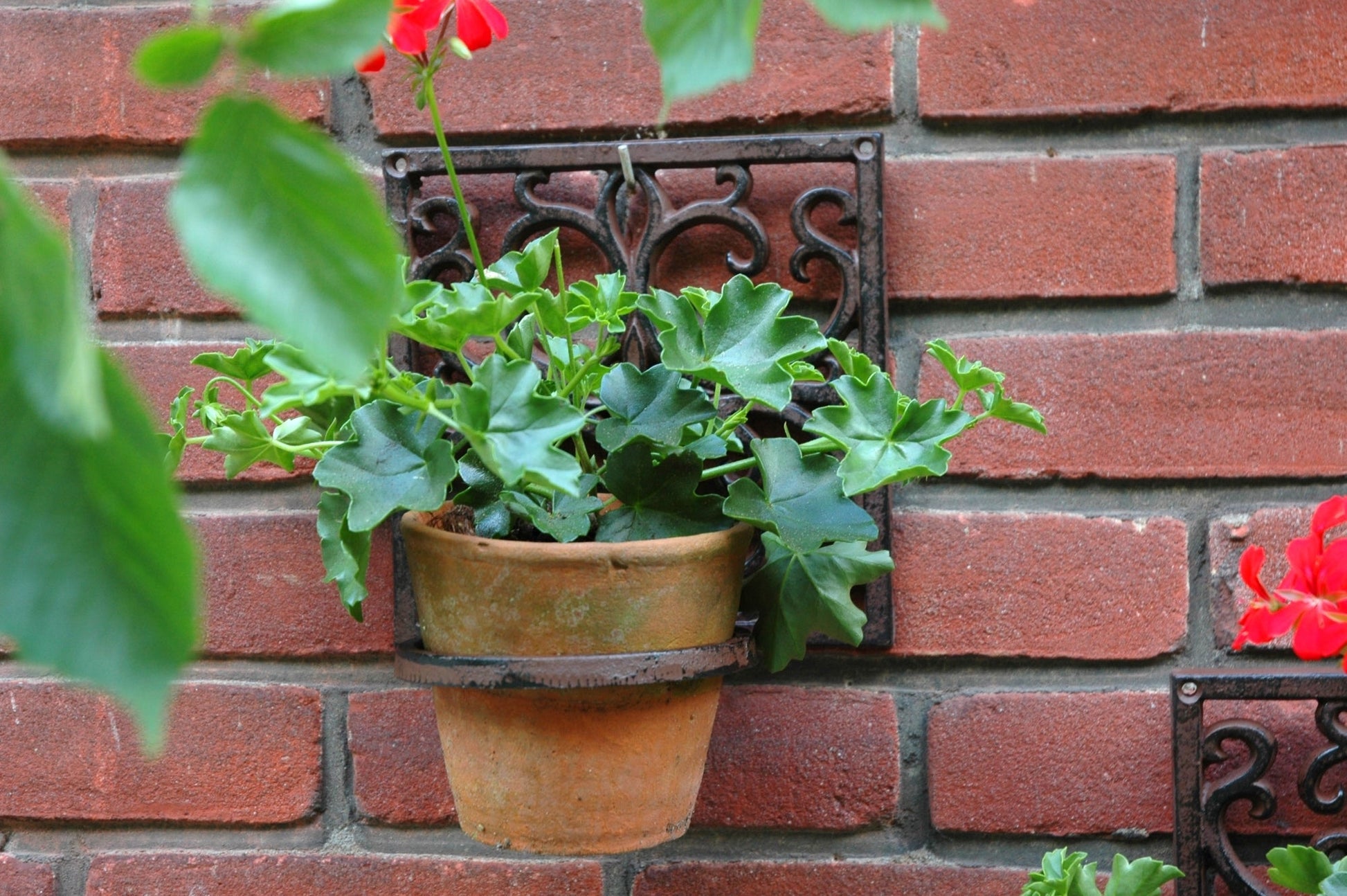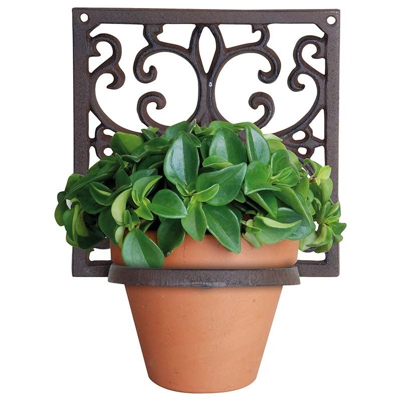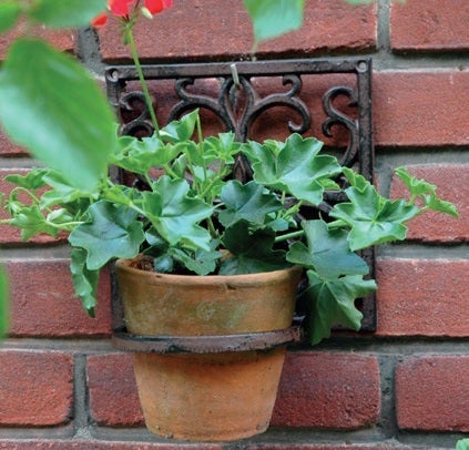 Cast iron square frame with flower pot holder. Inner size holder: ø 105 mm. Flower pot not included.