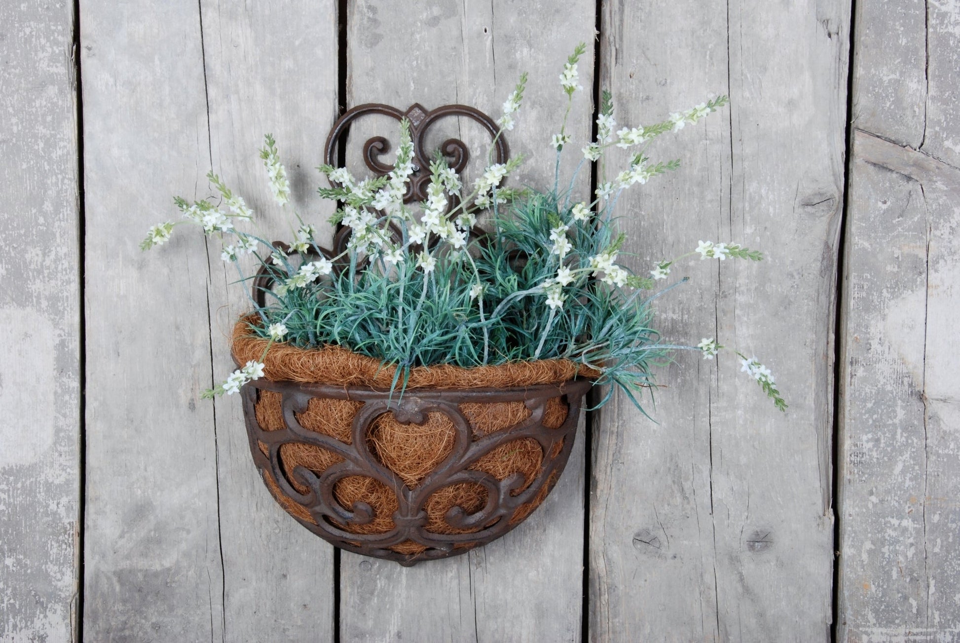 Cast iron half round wall planter with coco basket. Volume: 2,3 litre.