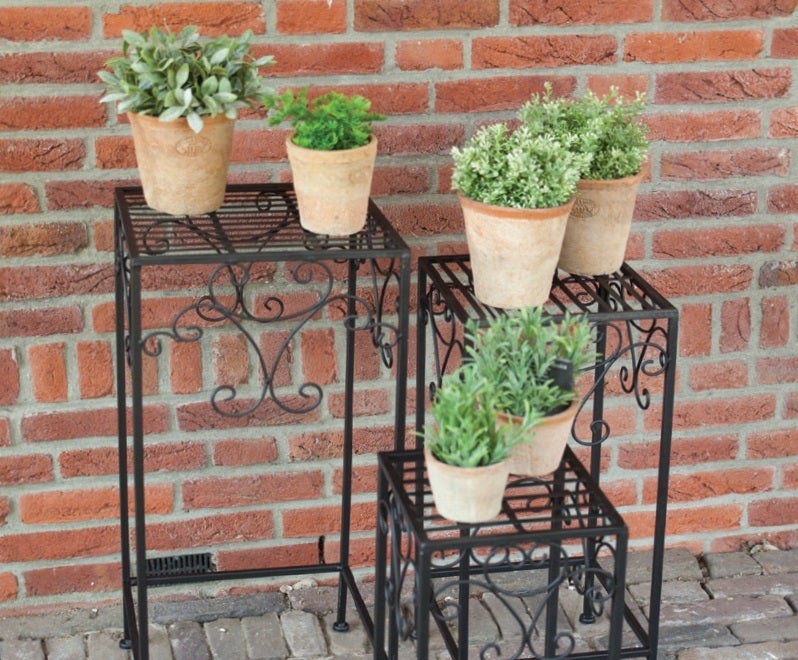 Plants tables set of 3, Iron, 8.6x8.6x19.8, 10.3x10.3x23.9, 12.4x12.4x27.7 in, China