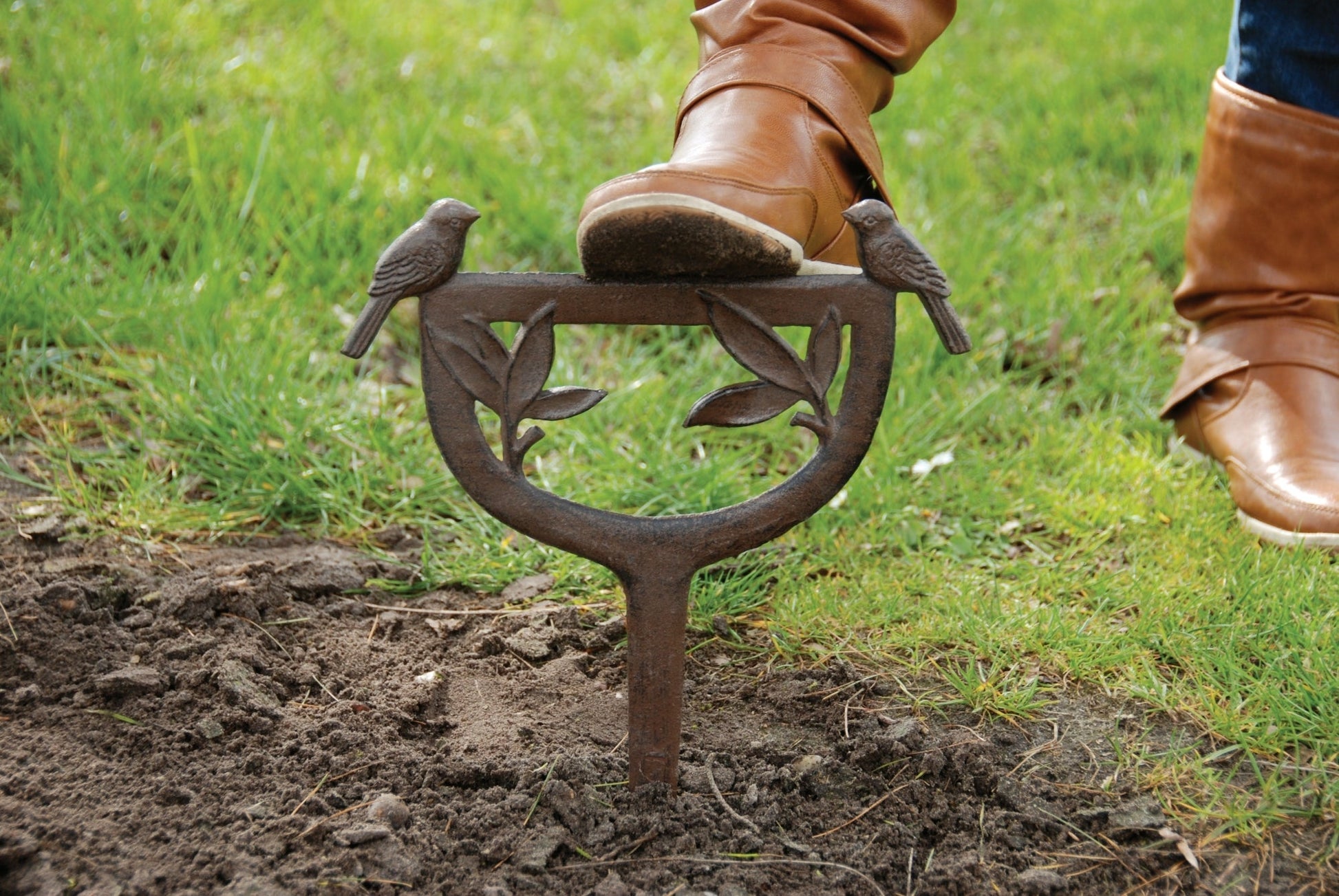 This decorative cast iron boot scraper removes coarse dirt with ease from the soles of boots and shoes when placed in the ground. And has been hand cast according to age-old tradition and craftsmanship.