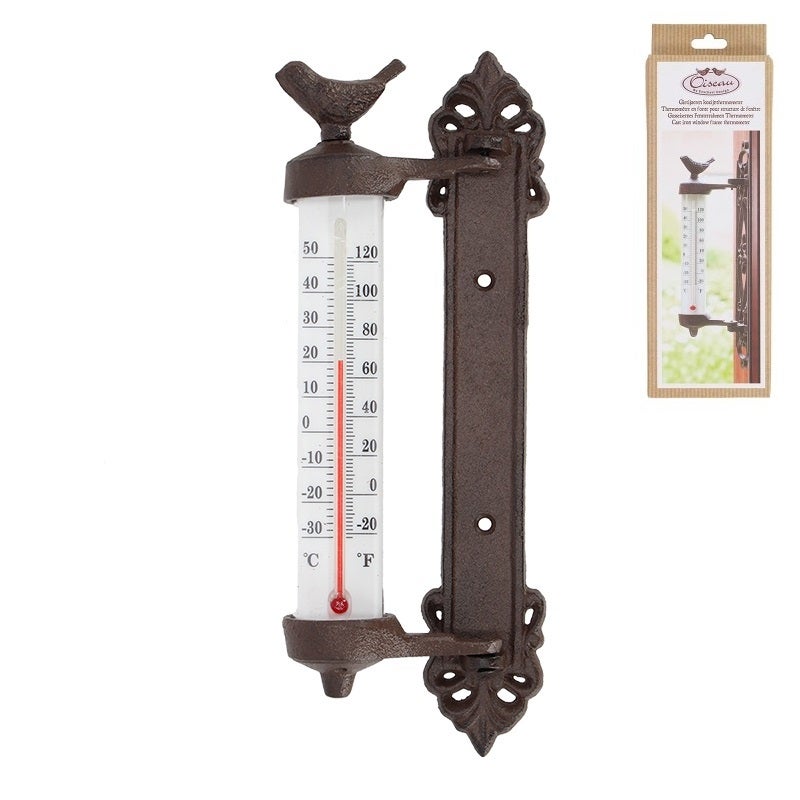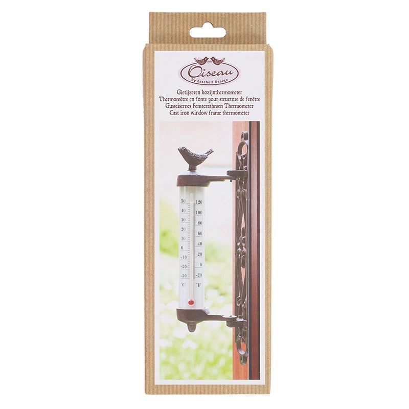 Wall thermometer "bird" in giftbox, Cast iron, PE, PS, kerosine