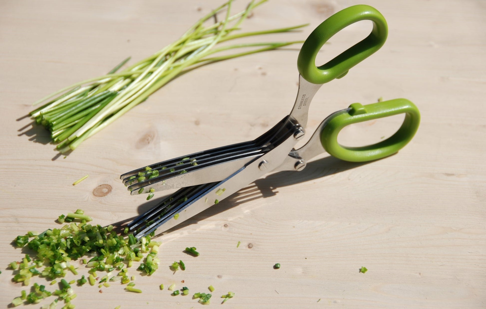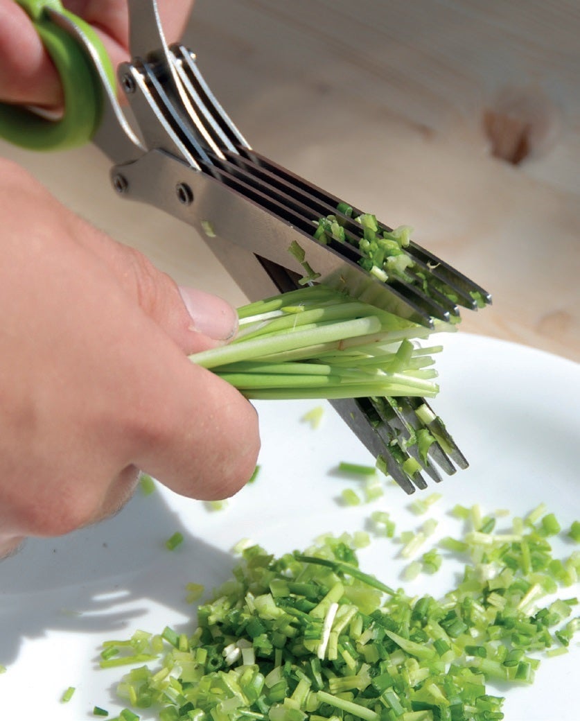 Fresh herbs taste fantastic and fit well with different dishes. Cutting herbs has never been easier thanks to these herb scissors. Instead of two blades like traditional scissors, these have ten blades so, you can cut chives and other herbs in to small and precise pieces without squashing. - ten cutting blades- not dishwasher proof- packed in blister card