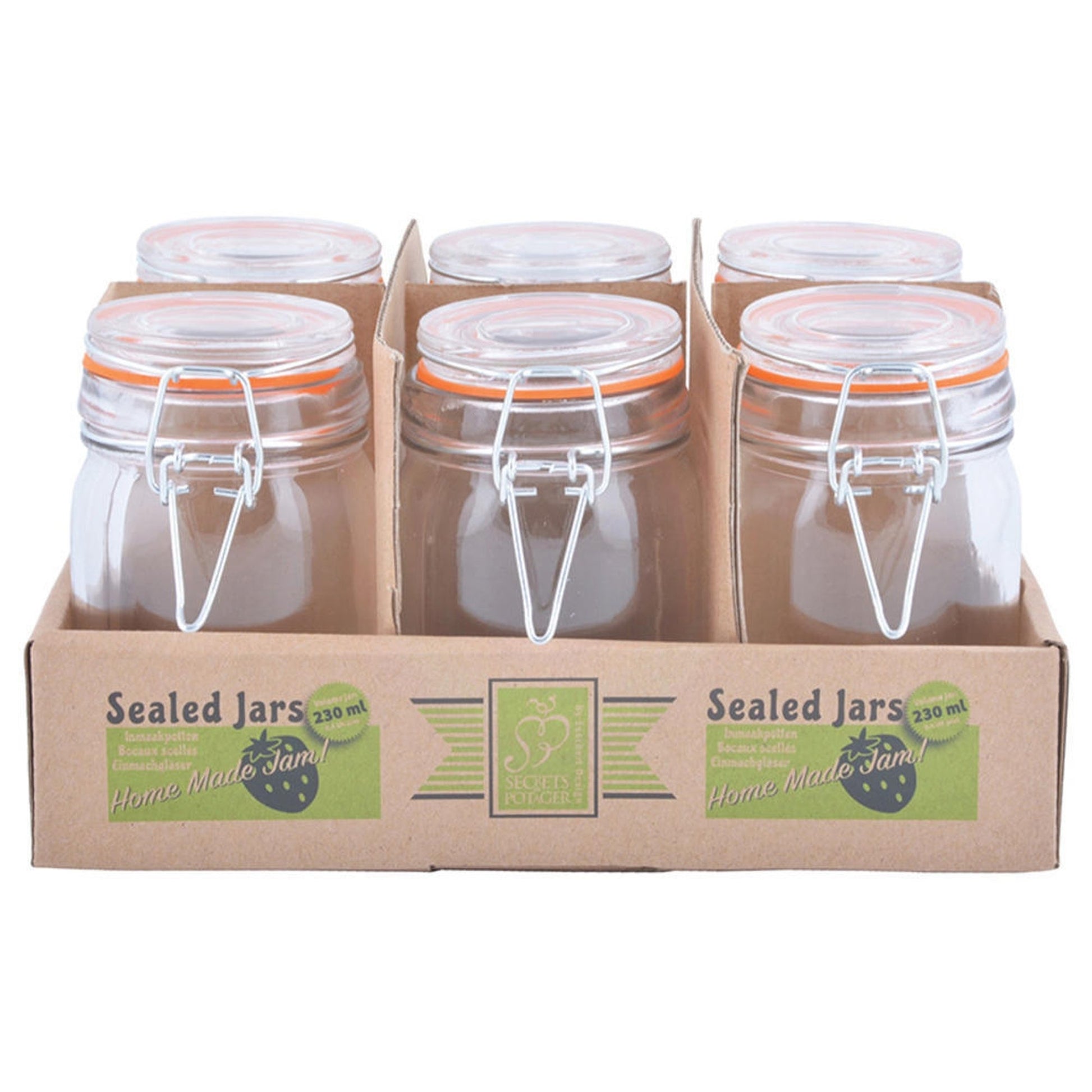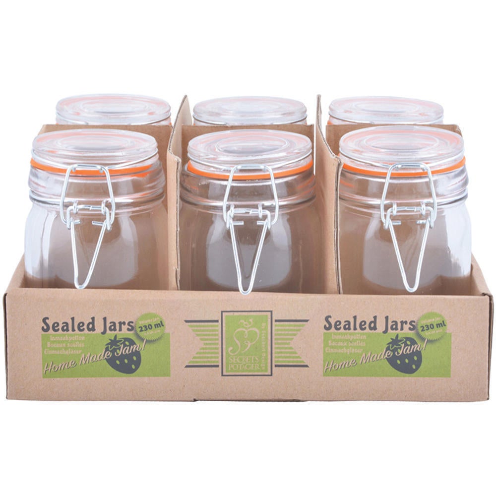 Jams and pickled vegetables are not only tasty, and can also a lot of fun to make yourself. Why not try different flavours of jams, chutneys or pickled shallots? The possibilities are endless.- sealed in as a set of 6 on carton tray- also possible to sell every pot separately, with its own bar code label (different barcode than tray)- dimensions jar: 9.2x7.0x11.8 cm (3.62x2.76x4.65”)- canning jar with orange rubber O-ring- reusable- not dishwasher proof