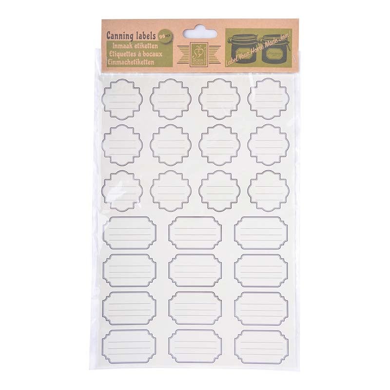 With these labels you will no longer forget what is in your preserving jars. There is enough space to write the name of the preserve and the date of preservation. The set includes 96 self-adhesive stickers in two designs. - two designs- 96 writable labels- self adhesive - packed in poly bag with header card with euro-lock