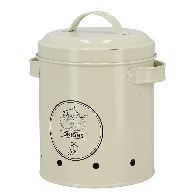 Grandmother already knew, onions are best stored in a cool dark place and kept well ventilated. This storage tin is perfect for keeping your onions fresh and reduce the chance of sprouting.- ventilation holes on the side