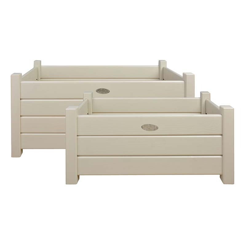 Rect. planters set of 2 white S/L, Pinewood, 23.3x12x11.9, 31.2x15.8x15.9 in, Poland