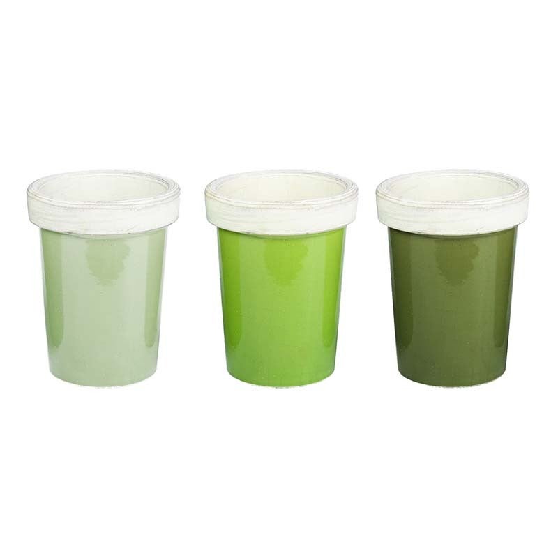 Long tom flower pot with crackle effect in a trendy green colour. Combine to your heart's desire with all shades and items for an even greener garden.- assortment of 3- with crackle effect- ideal combine with EL068