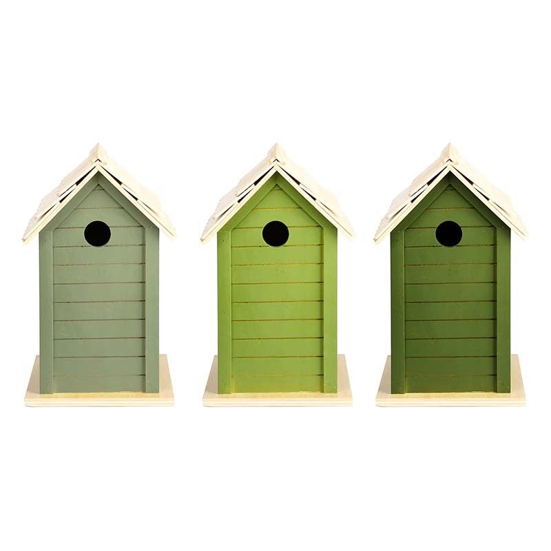 This bird house has been designed for the Blue Tit. Except for the Blue Tit, you can also expect the Crested Tit, the Marsh Tit, the Willow Tit and the Coal Tit in this bird house. The best place to hang the bird house is a quiet and somewhat sheltered spot, therefore not in the direct sunlight or on the side catching the rain, and an obstacle-free approach route for the bird. Many times during winter the bird house offers protection to birds seeking shelter in severe weather conditions.- assortment of 3- suitable for the blue tit, crested tit, marsh tit, willow tit and coal tit- with suspension eye- easy to clean thanks to the openable back- in trendy green