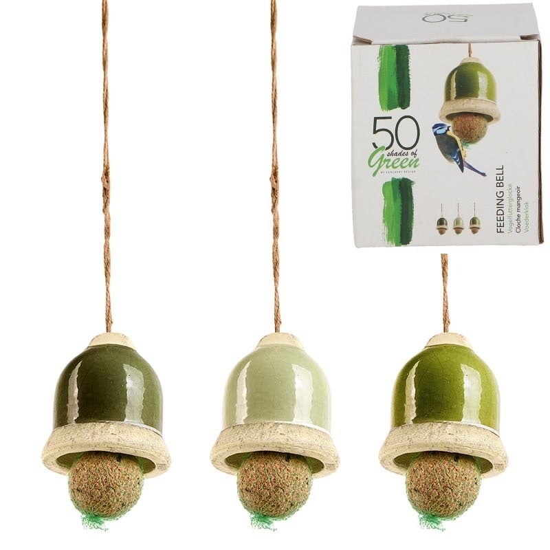 No garden can do without a feed hanger. This feeding bell made from ceramic provide a good feeding spot to hang suet balls or peanut nets, so that birds can enjoy them.- assortment of 3- made from ceramic- including hanging rope- in trendy green