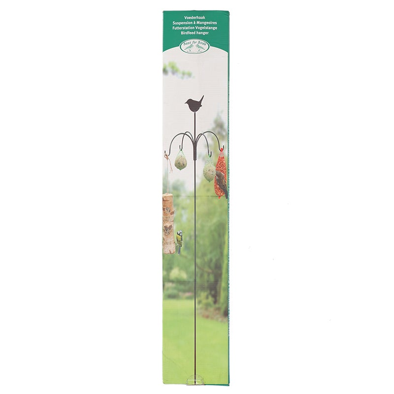 The perfect feeding station for garden birds. This practical and decorative station is easy to assemble and perfect for any garden. A variety of feeding items can be hung from the four single hooks.- set consisting of 2 part rod, 4 single hooks- easy to assemble- assembly required, packed in full colour giftbox- h shaped ground spike