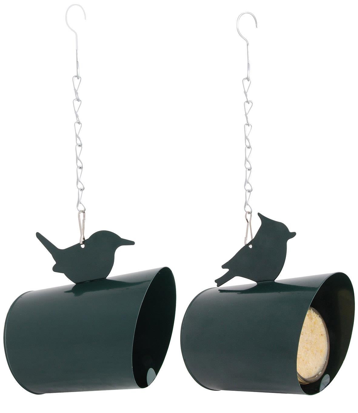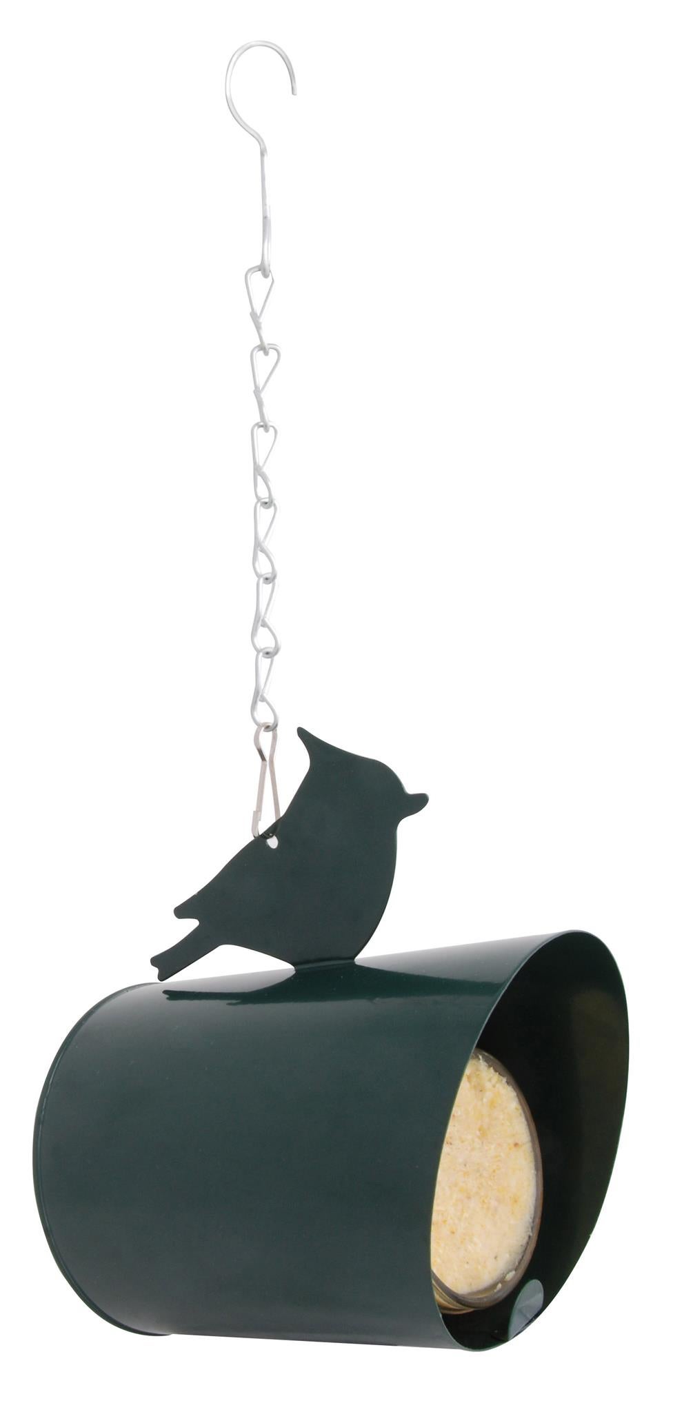 Bird peanut butter is a real treat for our feathered friends! No garden can do without a peanut butter holder. This classic dark green holder allows you to place a peanut butter jar. This feeding item will attract acrobatic birds such as: tits, sparrows, Eurasian nuthatches and woodpeckers.- assortment of 2 (Eurasian Wren and Crested Tit)- can be combined with peanut butter jars (FB261/252/279)- peanut butter jar not included- suitable for acrobatic birds- metal suspension chain