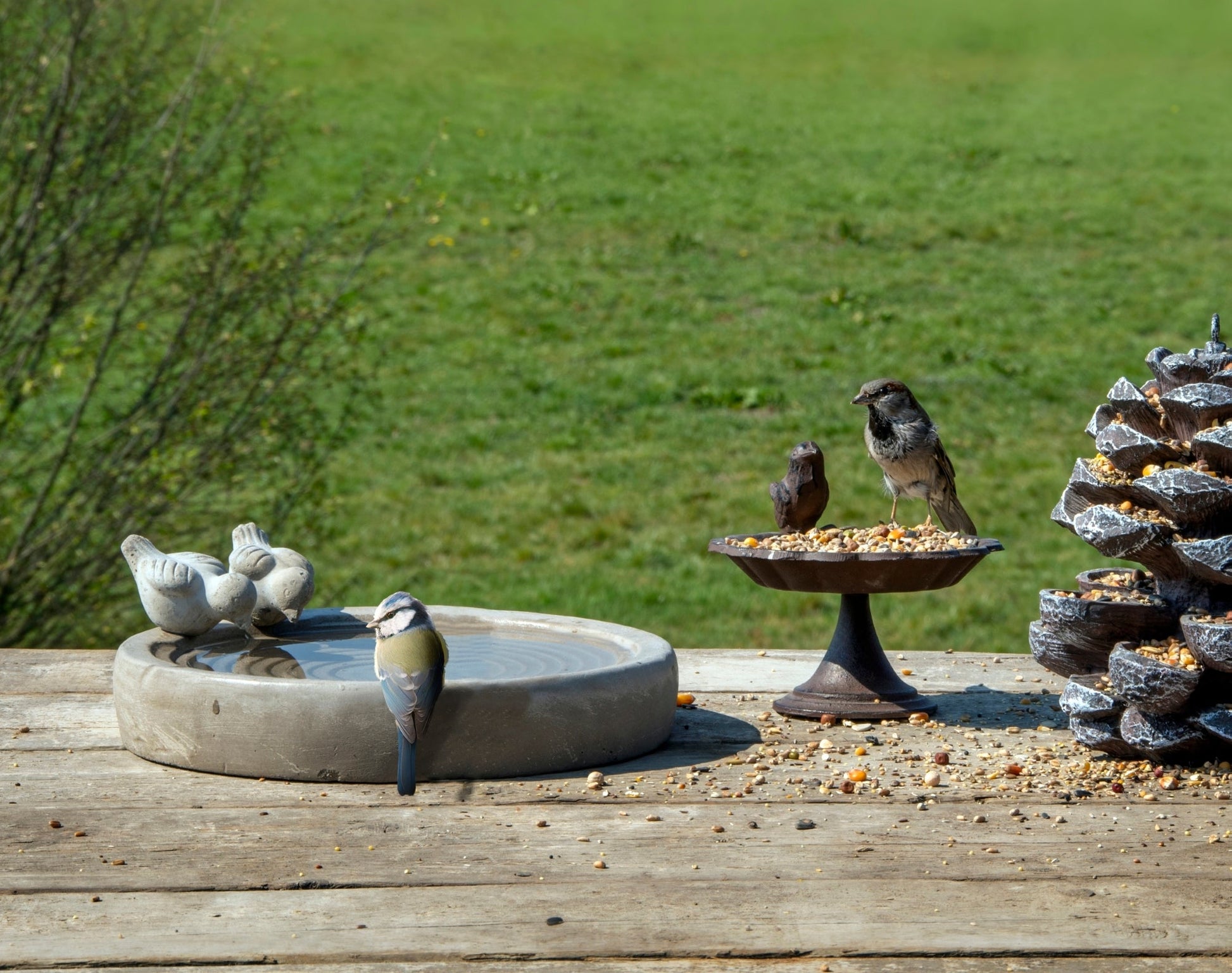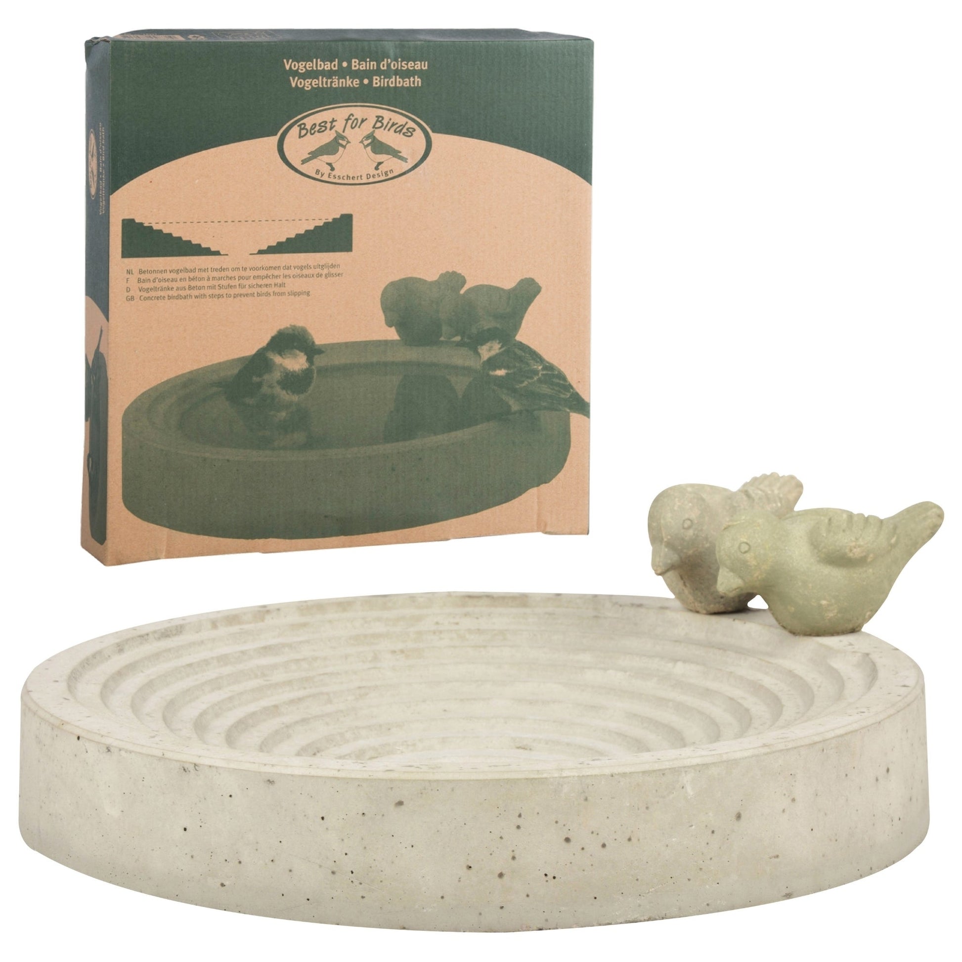 A bird bath offers garden birds double the fun. It provides them with a place to drink as well as a place to bath, especially in the summer. Two birds have already taken place on the edge, other birds surely can’t be far behind. The surface has steps that give the birds a safe place to land. Place this piece somewhere easily visible so that they can enter the birdbath with ease. Replace the water and clean the bath regularly.- packed in brown gift box
