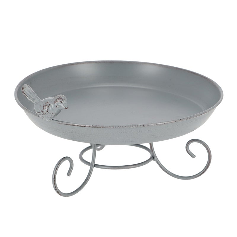 Grey Metal Bird Bath Standing, Excl. Bird Food
