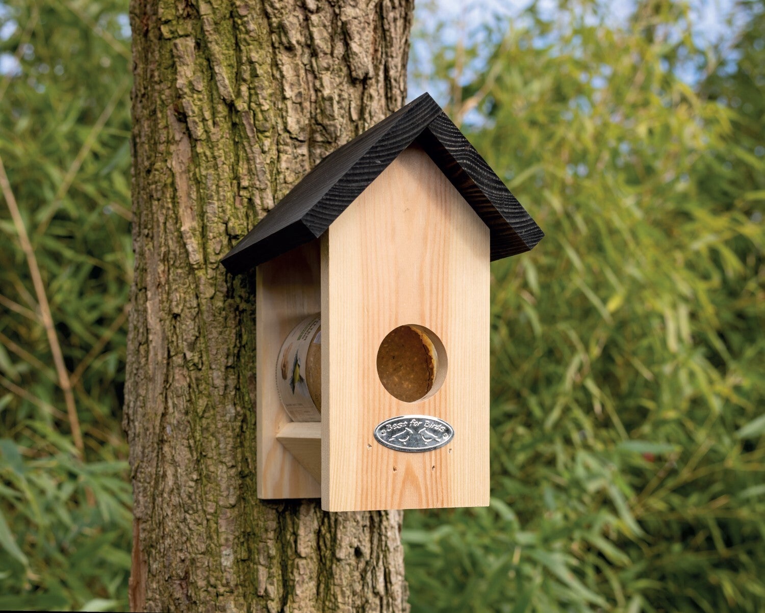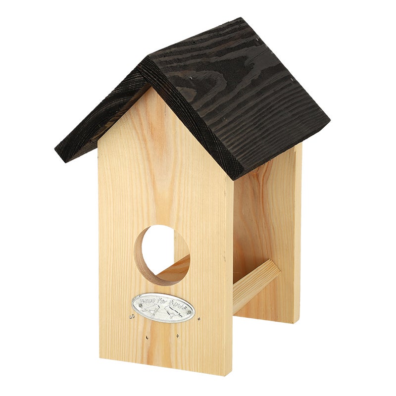 Peanut butter is a delicious treat for birds. Due to its small entrance in this peanut butter house, large birds cannot steal all the peanut butter, which gives small birds, such as blue tits and great tits enough scope to enjoy themselves. The peanut butter house is easy to attach to a tree or wall. When the peanut butter jar is empty, it is easy to replace.- made in Europe- suitable for blue tits- easy to attach to tree or wall- peanut butter is easy to replace