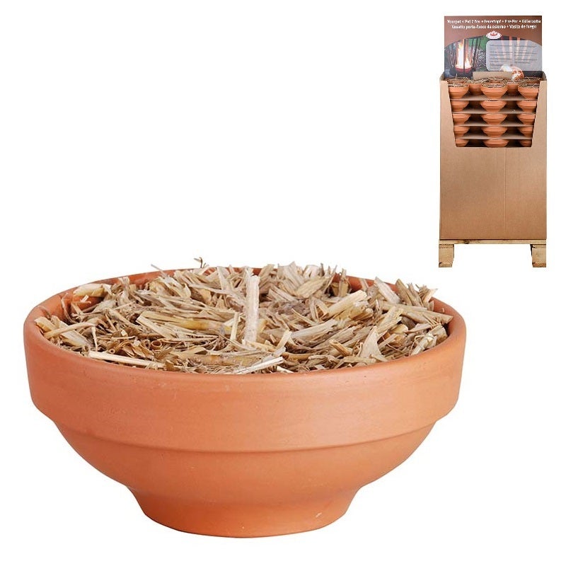 This straw fire pot is a real garden torch which creates an atmospheric full flame. The terracotta pot has been filled with a mixture of hay and candle wax so that the flame spreads across the pot’s entire surface.Use this item in a fire bowl as a perfect source of light and heat. the burn time of the candle depends on the wind and the weather. The fire pot can produce flames of about 30 cm (11.8") and can be dangerous if left unattended.- outdoor use only- burning time about 2 hours- packaged in display with header card