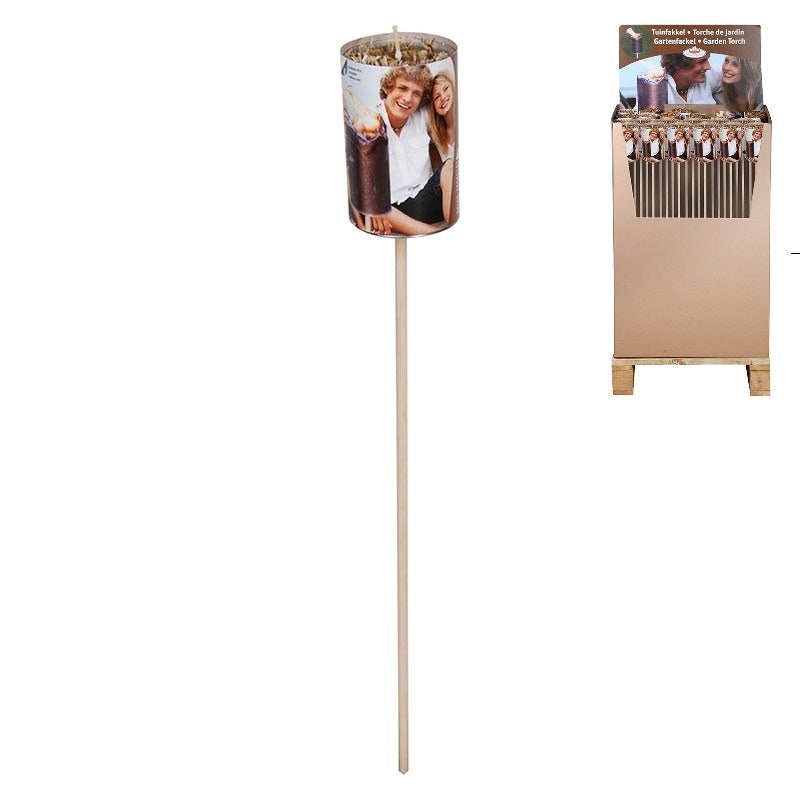 This straw torch is a real garden torch which creates a cosy full flame, the cardboard cylinder has been filled with a mixture of hay and candle wax so that the flame spreads across the torches entire surface.This item as a perfect source of light and heat and thanks to the wooden stick, it can be put anywhere in the garden as long as there is sufficient space around it, the burn time of the candle depends on the wind and the weather. The torch has high flames and can be dangerous if left unattended.- outdoor use only- burning time about 6 hours- packaged in display with header card- do no leave unattended
