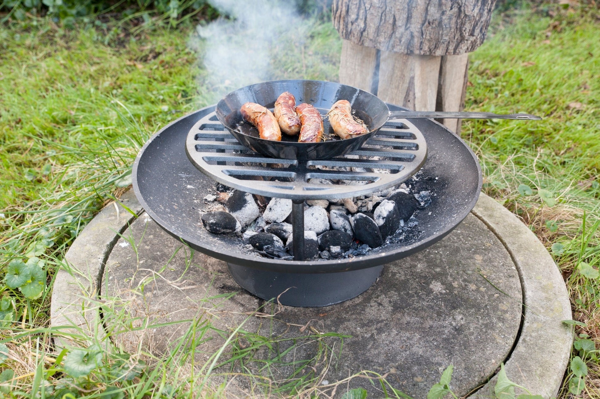 Cooking outside is an experience and an adventure. Prepare the most delicious meals with this cast iron campfire grill suitable for a fire bowl, fire ring or above an open campfire. This grill can be used to grill meat, and can even support a pan or Dutch oven.