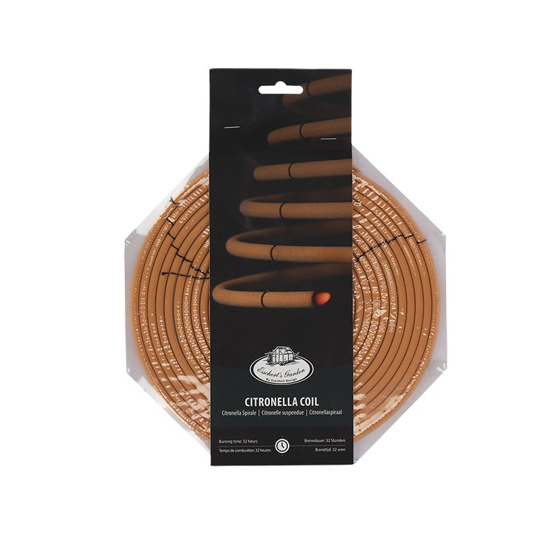 Biting insects and mosquitos can be discouraged from the outdoor seating areas by hanging this citronella coil. Mosquitos and other insects dislike the smell of burning citronella.- with hanging cord- discourages mosquitos- 32 hours burning time