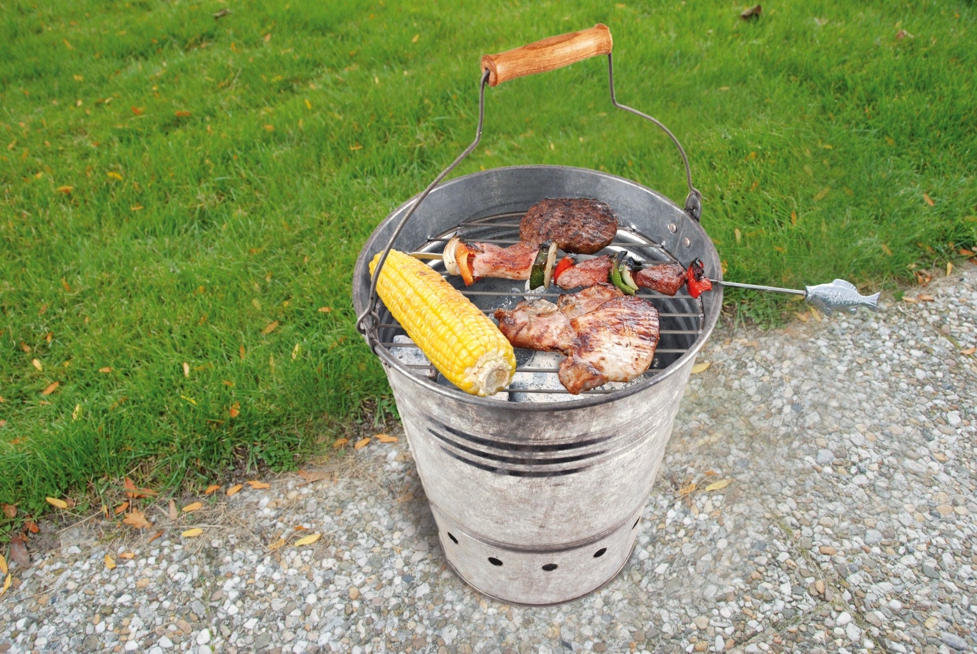 Cooking outside is an experience and an adventure. Prepare the most delicious meals with this BBQ bucket, the BBQ comes with a coal grid and has holes in the bottom allowing a continuous air flow to the coals when in use.- handle with wooden grip- including grill and coal grid