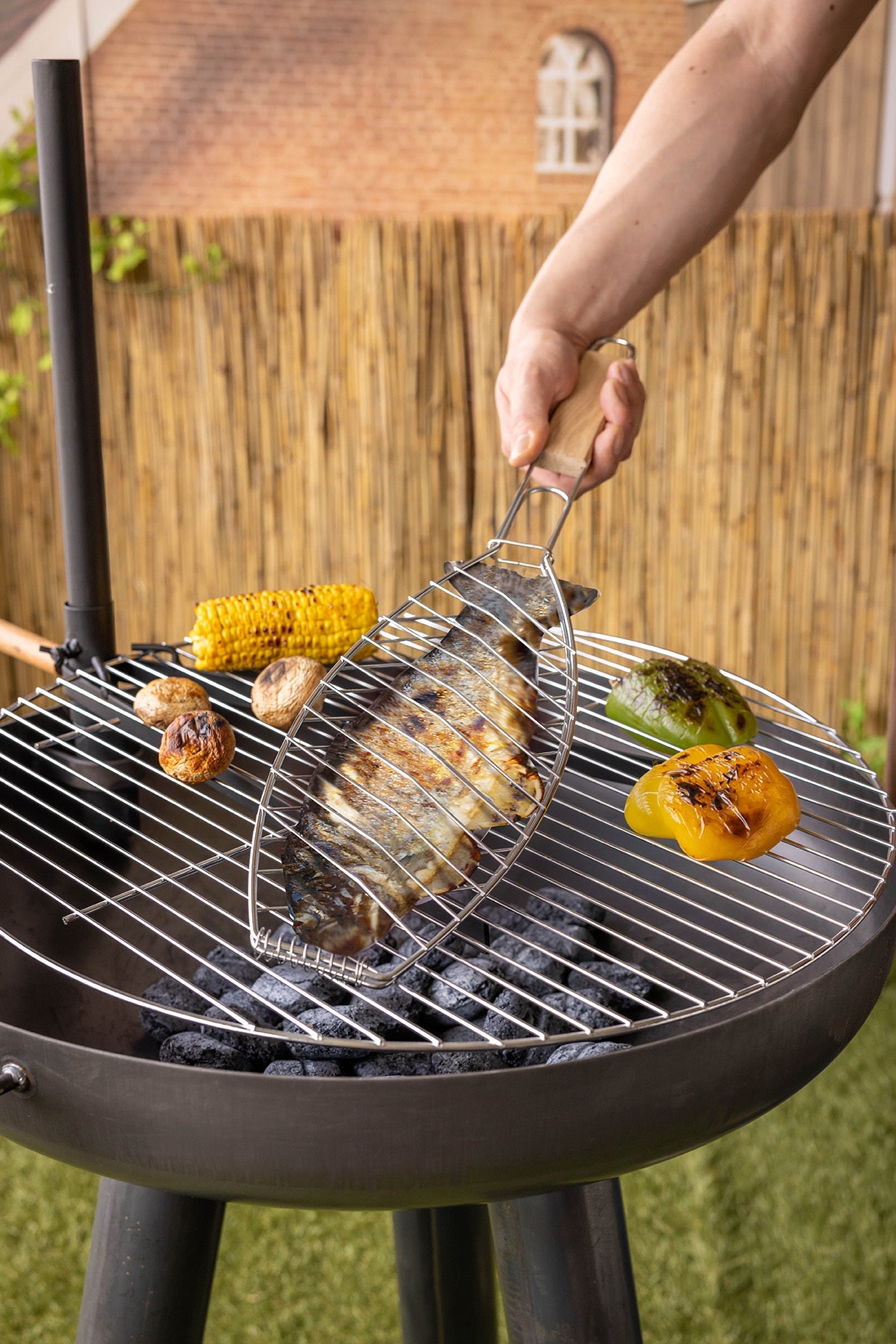 This fish holder makes barbecues even more fun! The basket design makes it easier to cook the most delicious fish on the grill. The fish can easily be clamped between the fish holder.The holder is made of stainless steel and has a wooden handle. - made of 430 stainless steel and ash wood