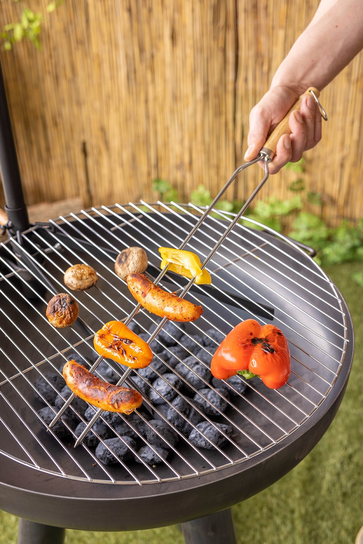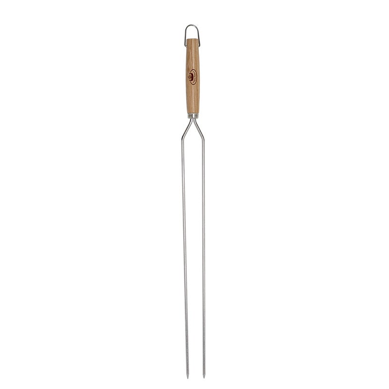 These practical meat skewers consist of two skewers, so that the grilled food can be skewered stably. The hardwood handle is comfortable to hold, making it easy to turn the meat. The skewer is durable, easy to clean and reusable. The skewers are very sturdy and do not bend.- made of 430 stainless steel and ash wood - easy to clean - reusable