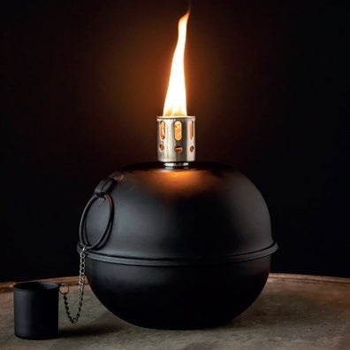 This tumble torch was first developed in the United States during the 50s, to warn motorists about constructions, it is made of powder-coated metal and the bottom is filled with gravel, the design allows the piece to right itself if it is knocked over. The extra thick and wind resistant wick of the torch has a burn time of 40 hours.