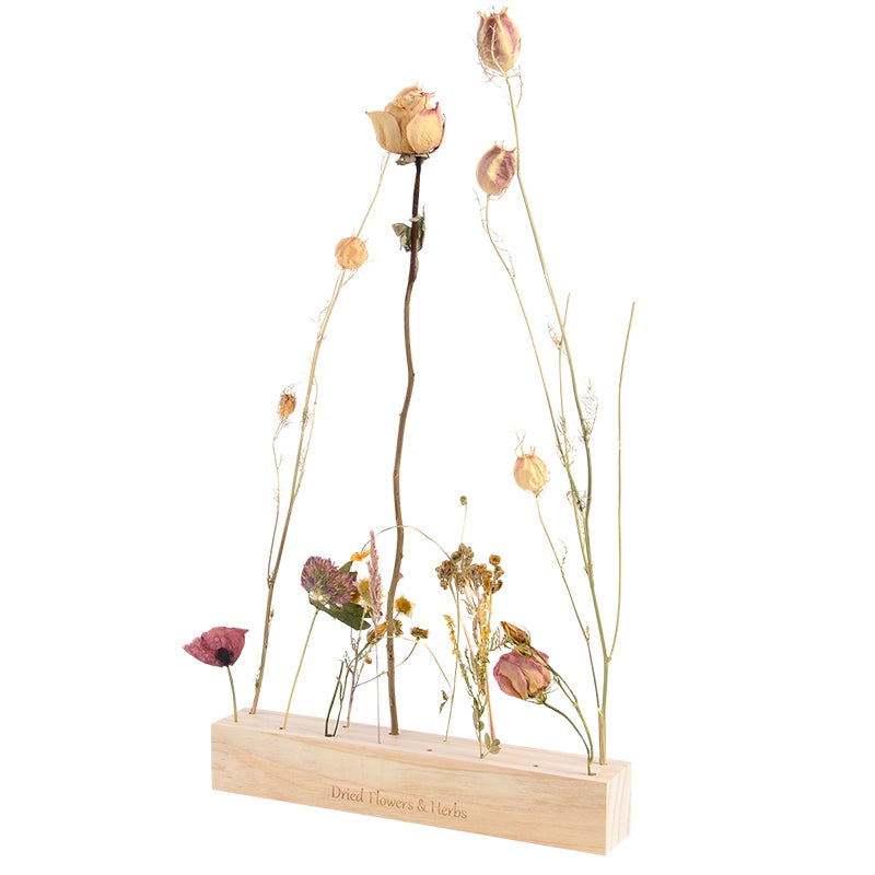 With this flowers and herbs stand, it is possible to arrange en rearrange dried flowers. Get nature inside!- FSC® certified wood- provided with 16 holes in different sizes- easy to use