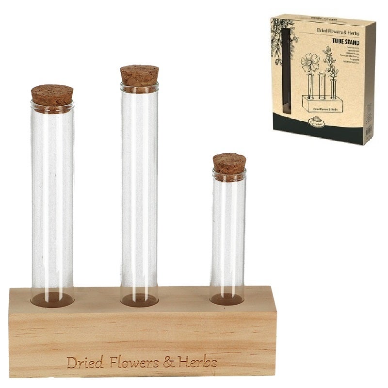Flower & Herb Test Tube M, Pinewood, Glass, Cork, China