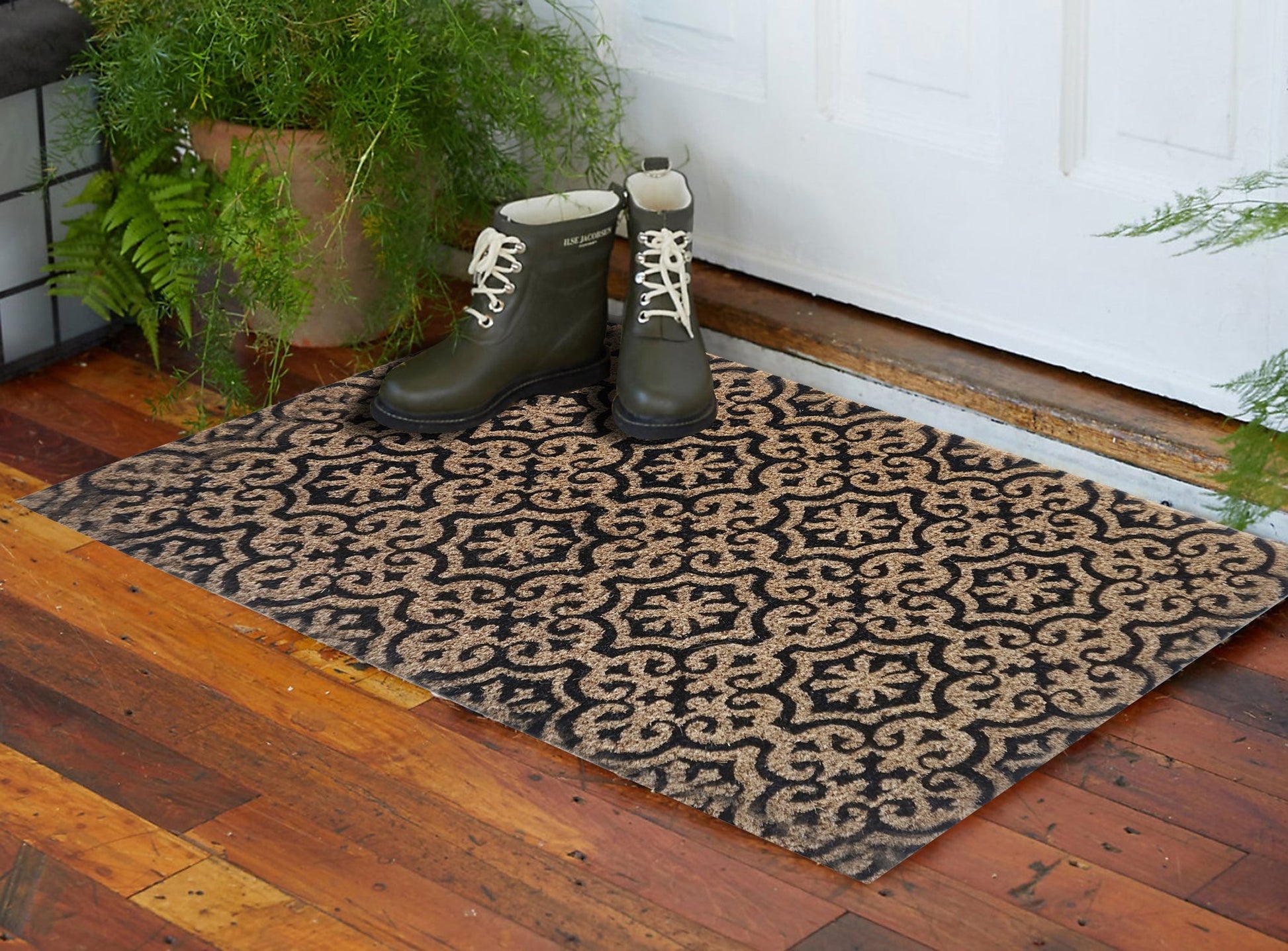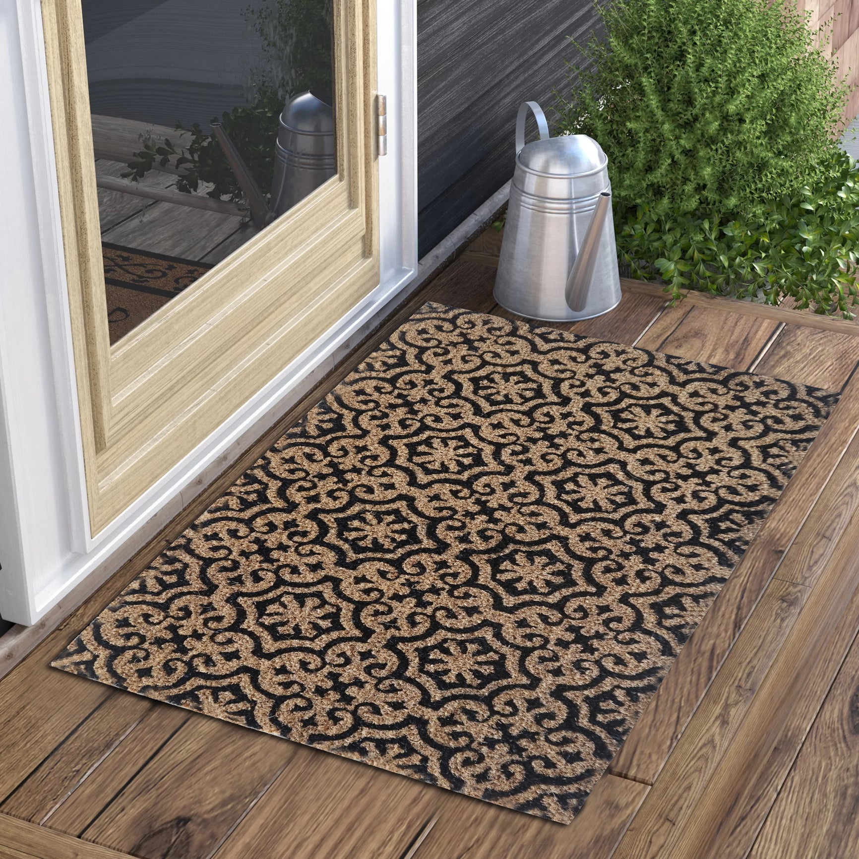 Mosaic Pattern Coir Doormat, Natural, PVC Tufted