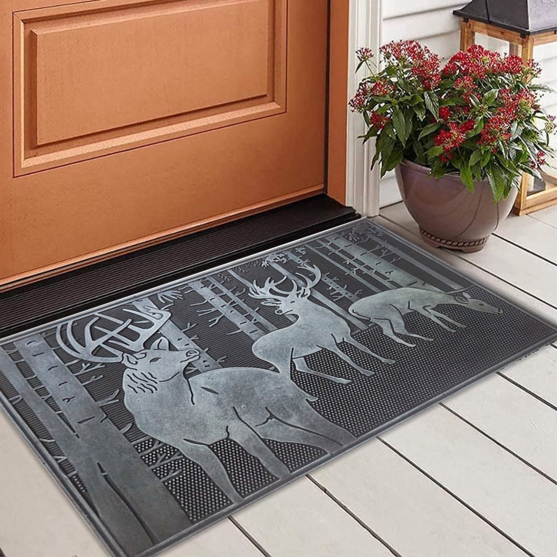 50% Off, Deer In The Woods Rubber Doormat, Sliver Finish