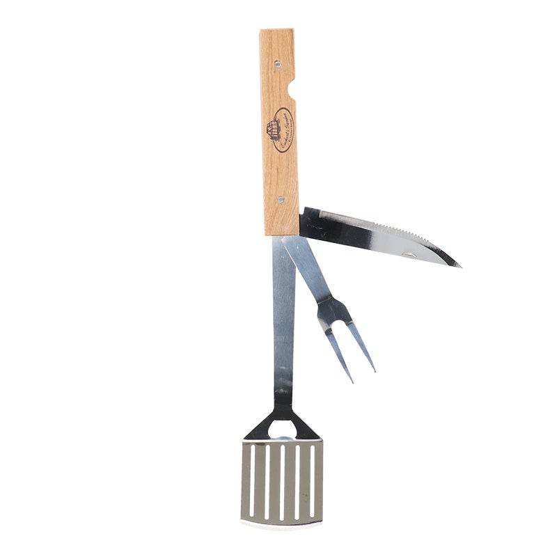 Cooking outside is an experience and an adventure to create the most delicious barbecue dishes. With this 4-in-1 foldable barbecue tool, consisting of spatula, fork and knife. The spatula has a handy integrated bottle opener makes this piece the perfect barbecue buddy.- 4-in-1 function- foldable
