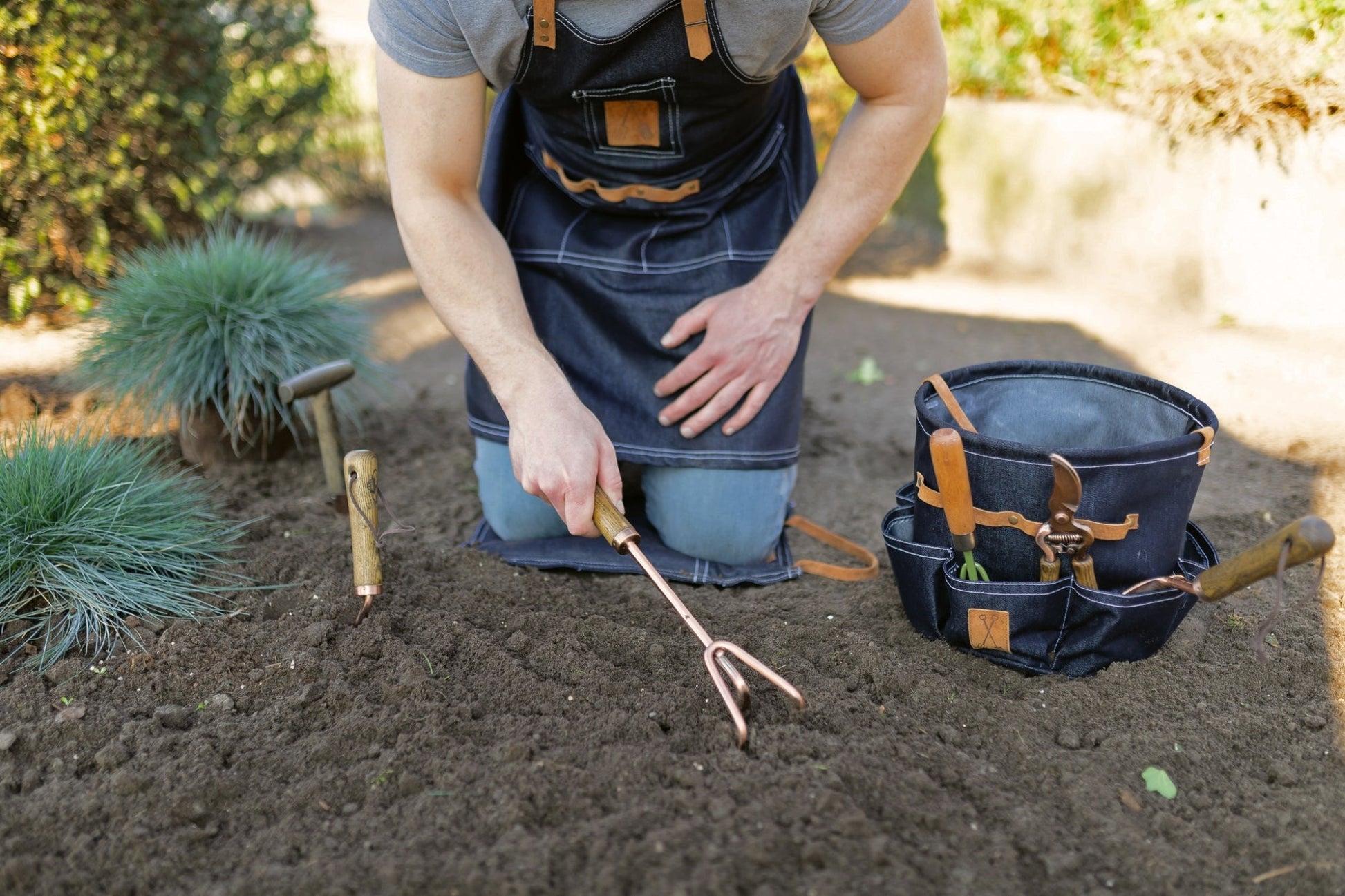 This denim garden tool bag has many spacious compartments to store garden tools. Easy to carry around the garden thanks to the sturdy handle.- made from sturdy denim- spacious compartments- handle for easy carrying