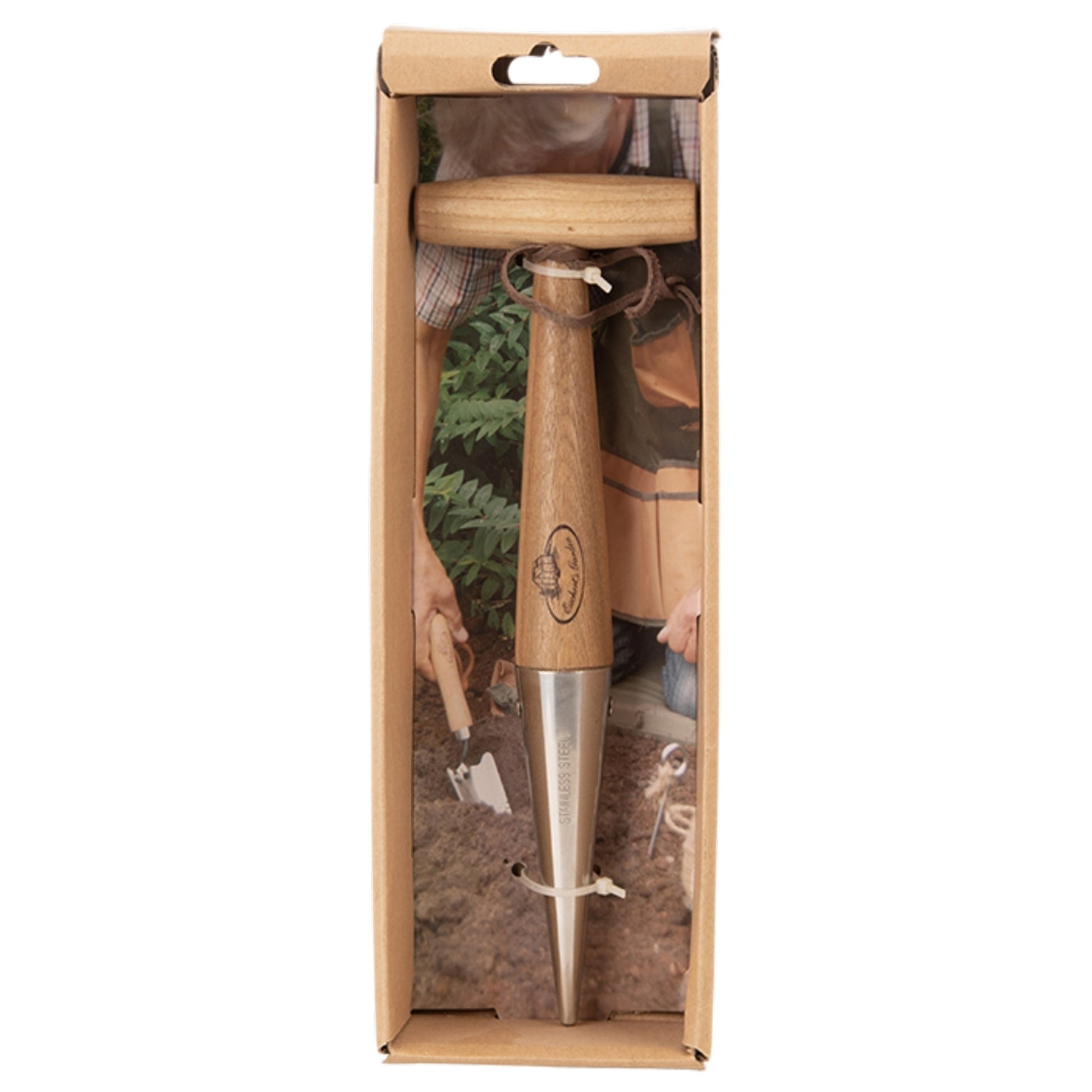 This traditional stainless steel dibber is and ideal gift for anyone with a green thumb. This dibber is perfects for making holes for the planting of bulbs and seedlings, the t-shaped grip makes holding this tool easy and even pressure to be exerted to ensure each hole is the same depth.- leather hanging loop- ergonomic handle- open gift box with euro lock