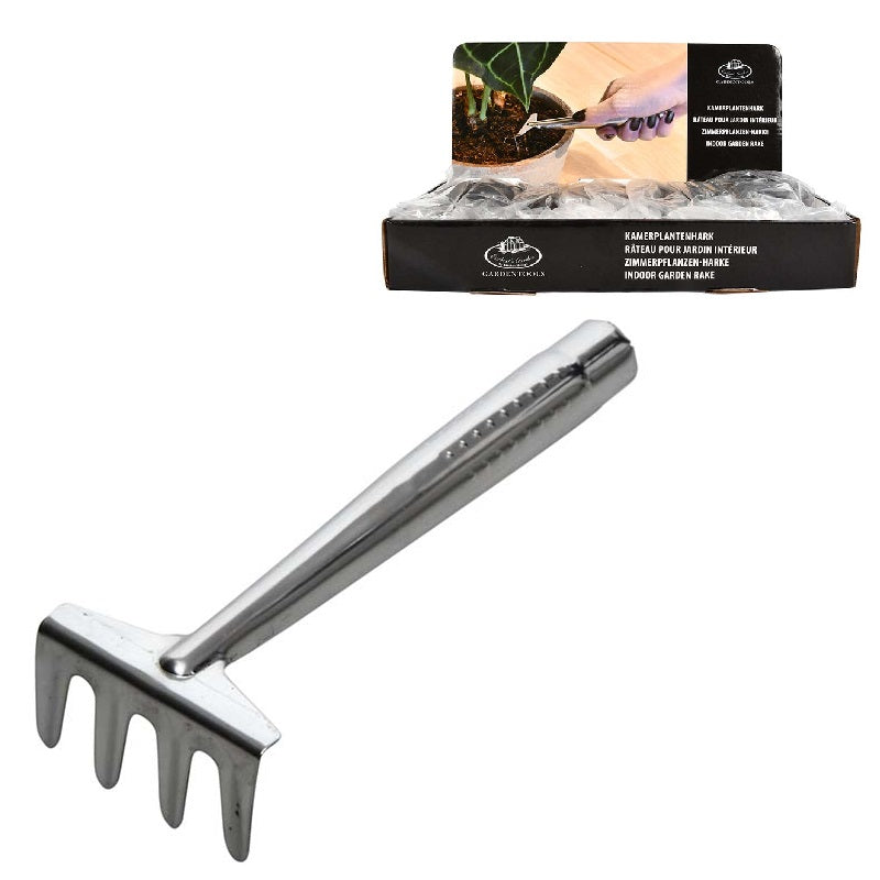This indoor garden rake is useful whilst taking care of house plants. This rake helps with loosening the soil before adding compost or fertilizer.- made from stainless steel- is of great help with loosening soil- with 4 teeth