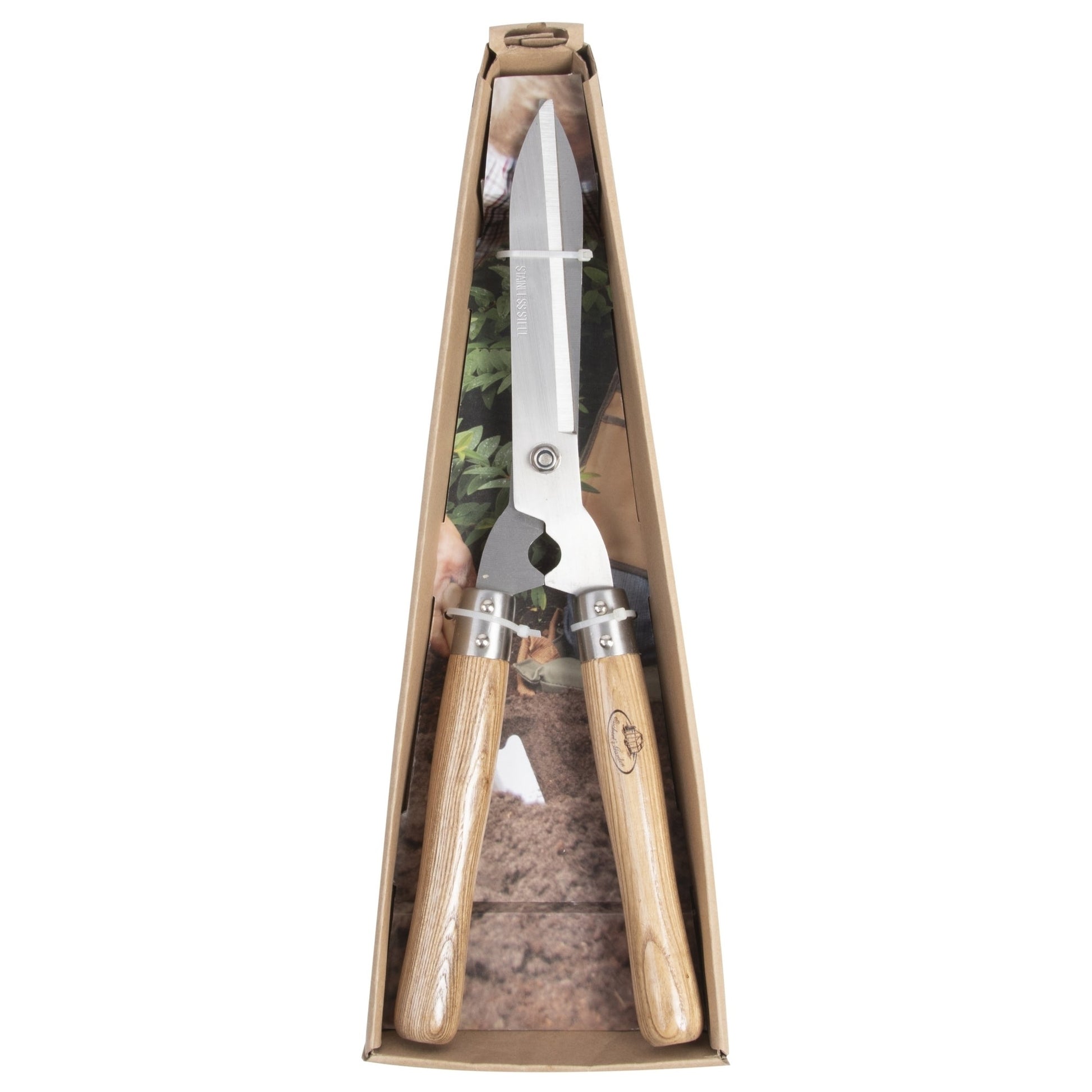 This traditional garden hedge shears are an ideal gift for anyone with a green thumb and are perfect for pruning and shaping hedges. - open gift box with euro lock