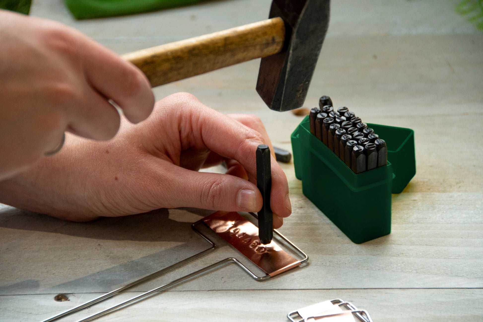 Select the letters needed and hammer the letters, one by one, carefully into the plant label. The set consists of letters A-Z and &.- 27 metal stamps- suitable for metal plant labels- easy to use
