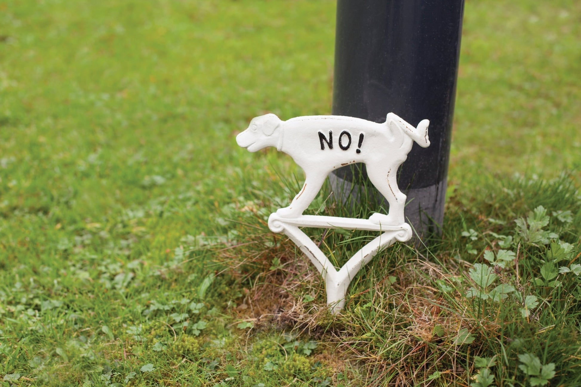 This sign lets you tell people to keep dogs out of you garden and is easily placed in the ground.- pin- English text- weather proof