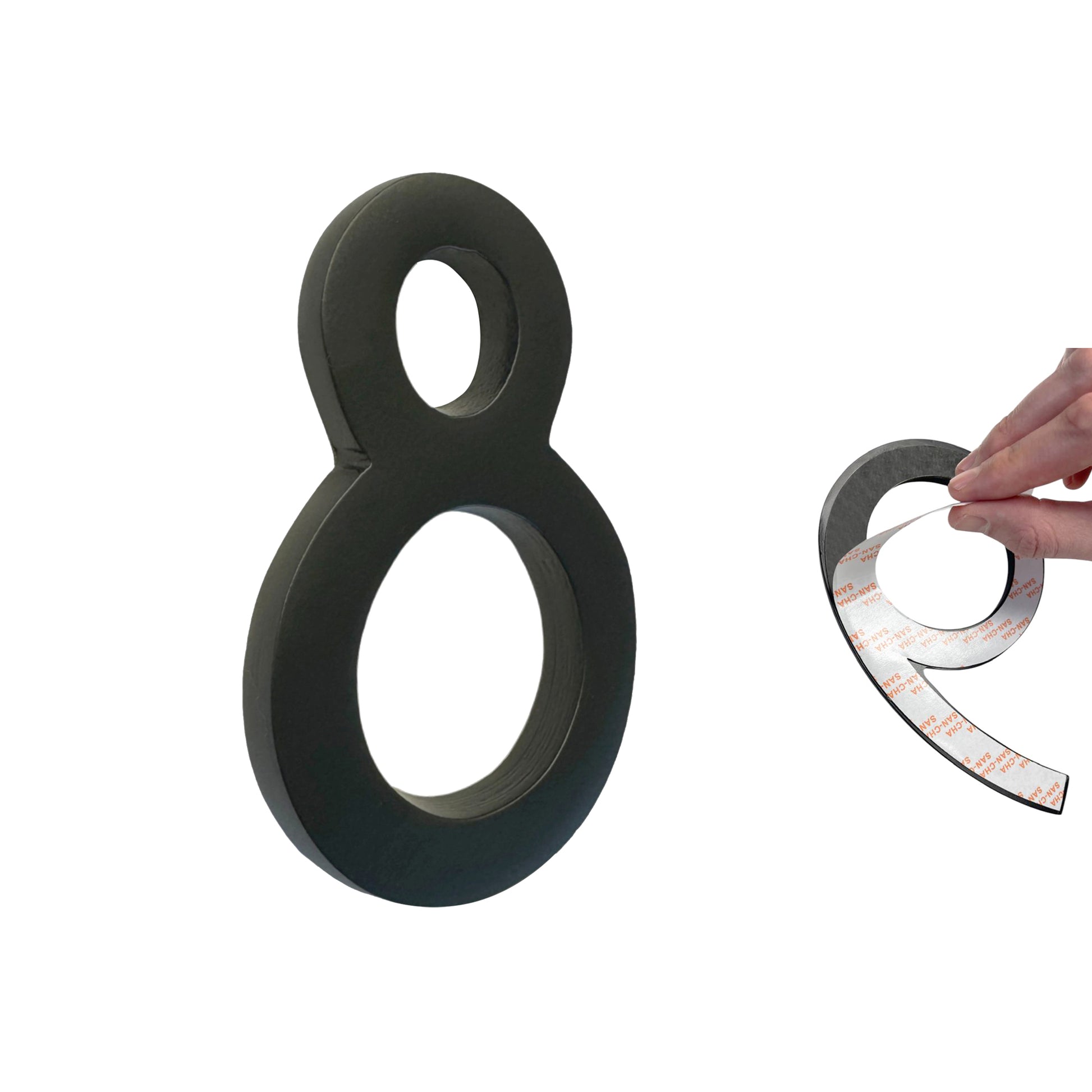 Self Adhesive Aluminum Number 8, 4 inch, Black