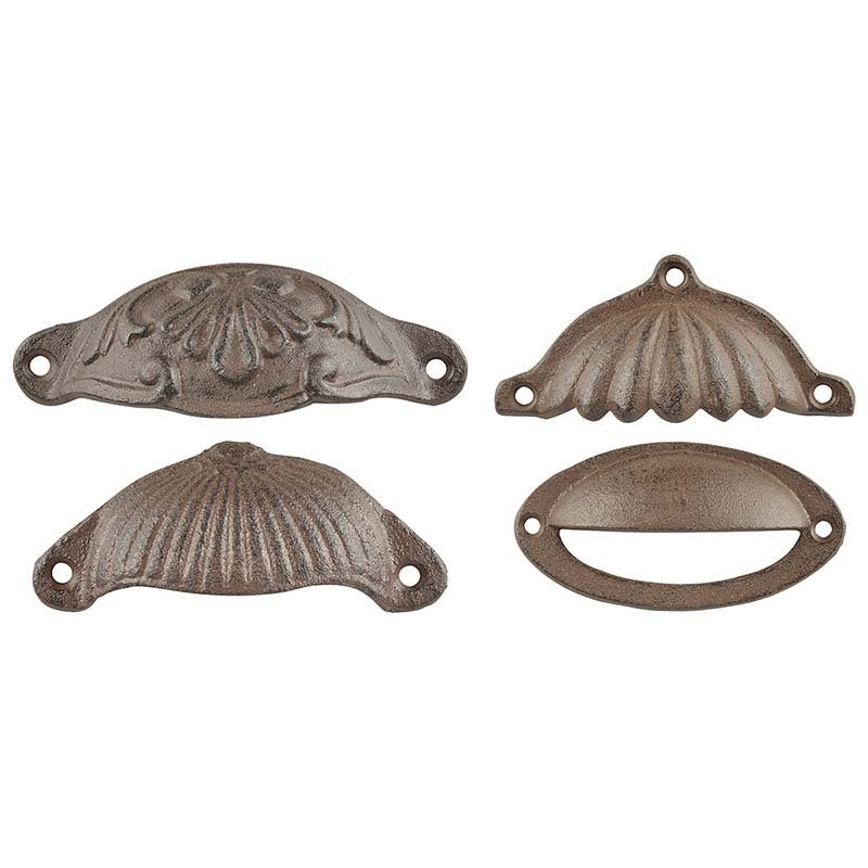 For centuries furniture was constructed with mountings that were both protective and functional. These decorative cast iron handles have each been hand cast according to age-old old tradition and craftsmanship.- assortment of 4 designs- mounting holes