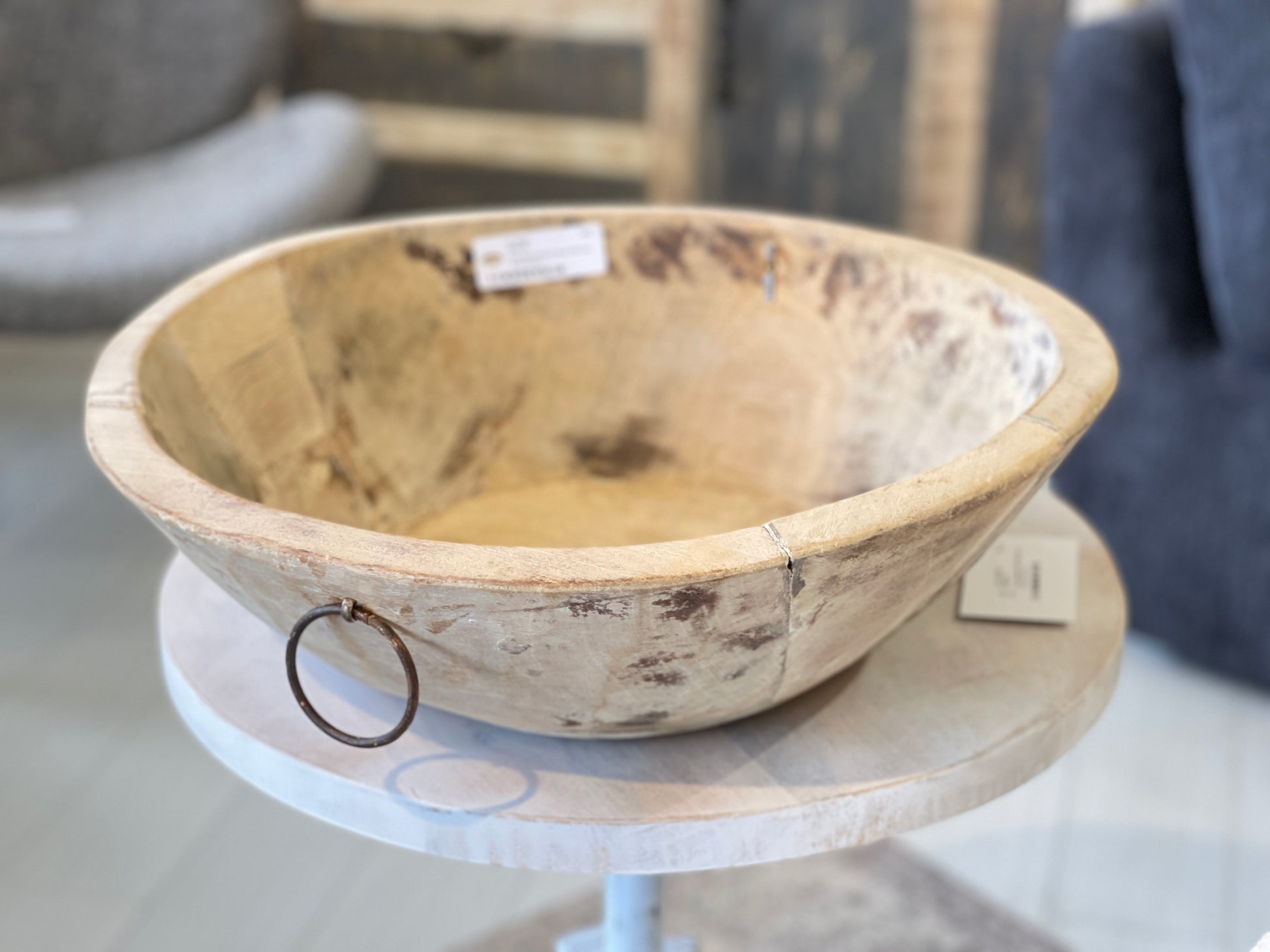 Old Natural Finish Bowl With Iron Handle, 18 To 20 In