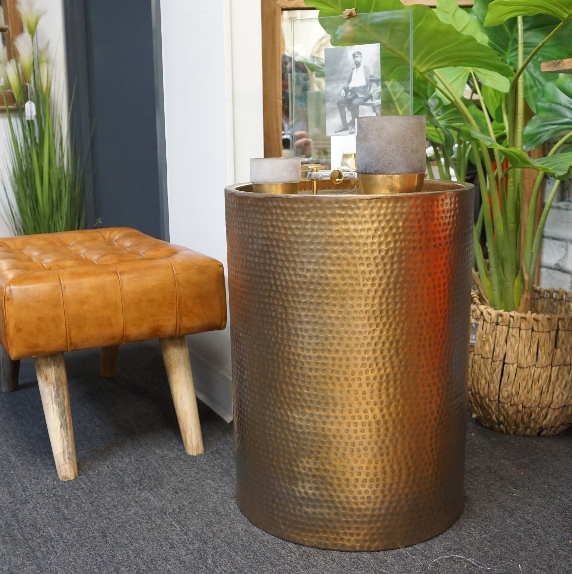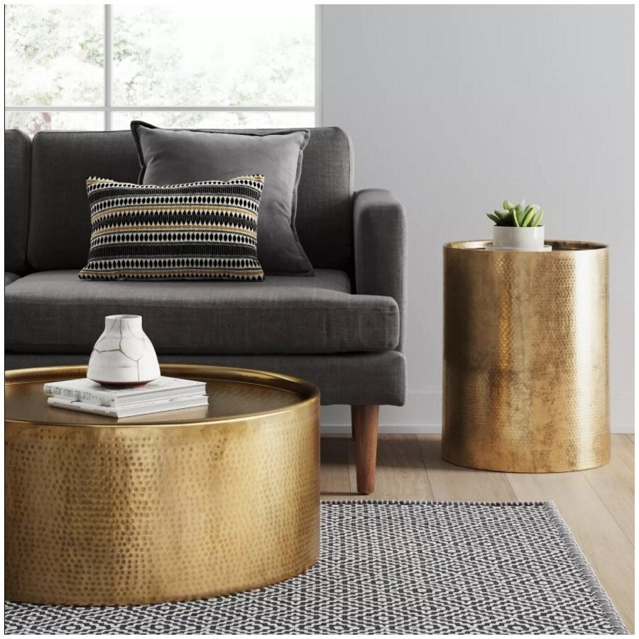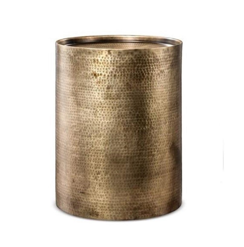 Sigurd Hammered Drum End Table, Small, Antique Brass, Aluminium, 15.7 x 15.7 x22 in