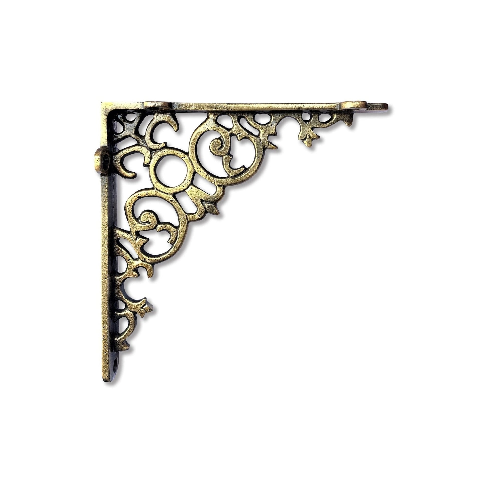 Scroll Bracket, Small, Small, Brass, 6x1.2x6 in, India