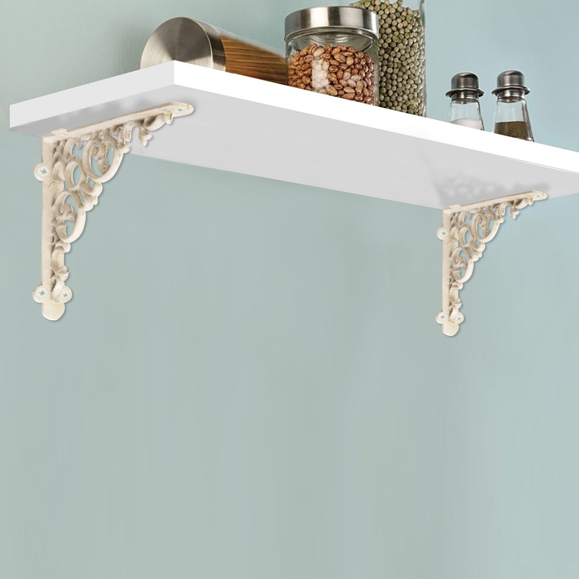 Scroll Shelf Bracket, Medium, White, 8x1.6x8 in, India
