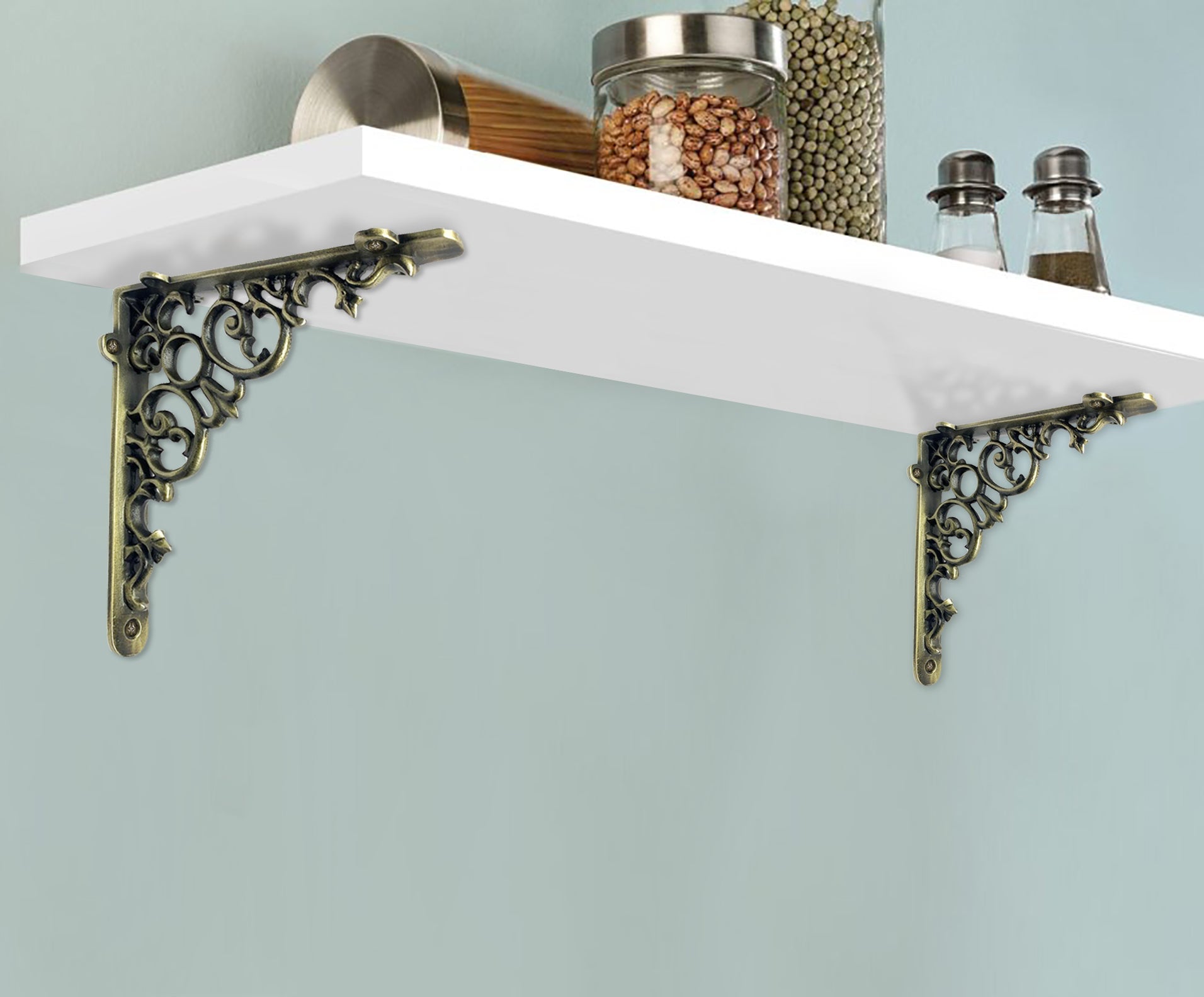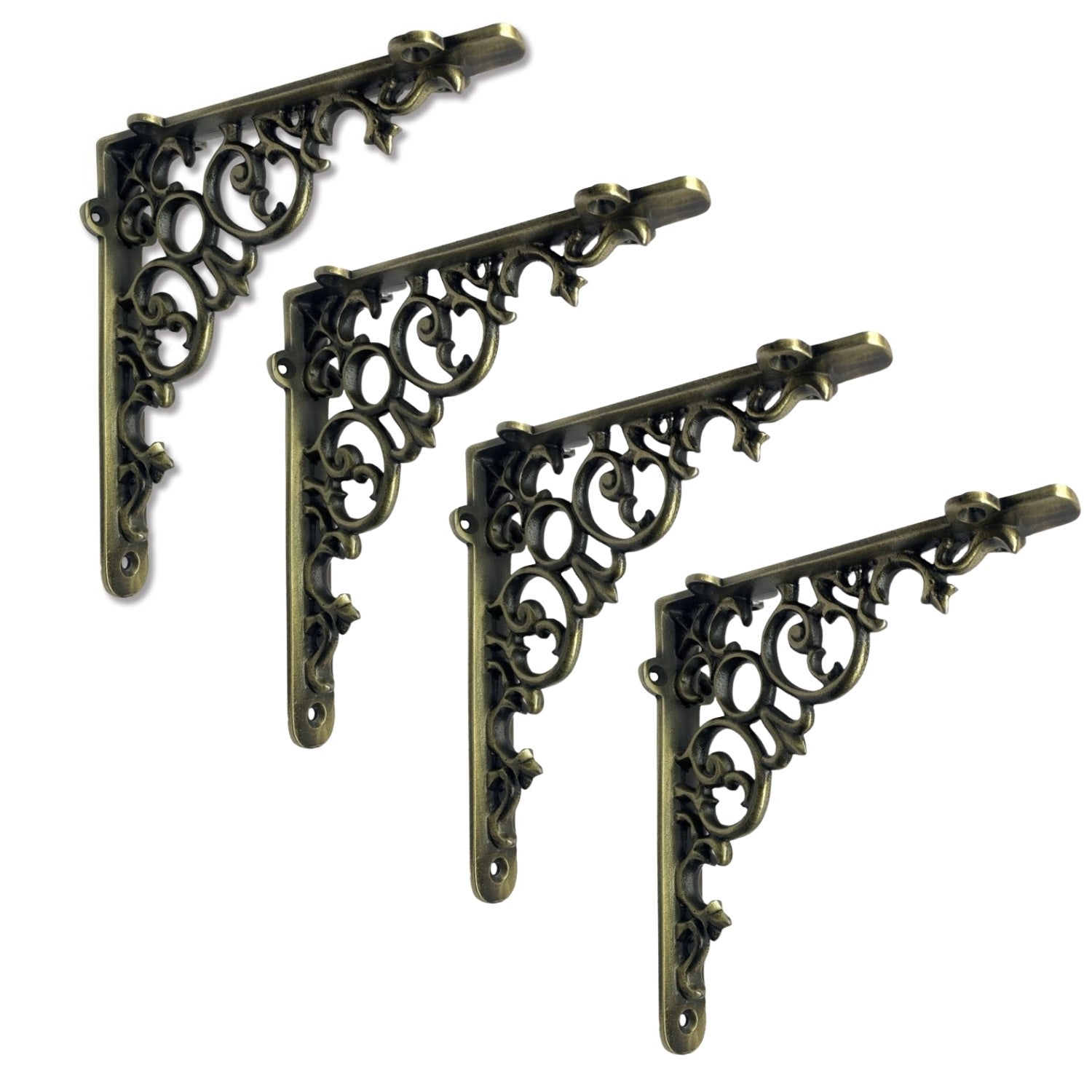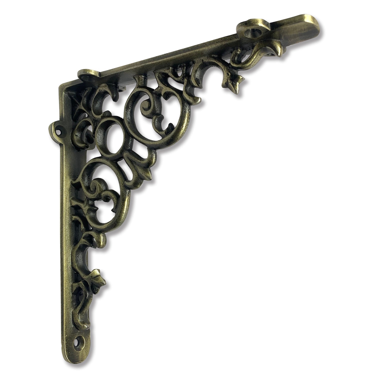 Scroll Shelf Bracket, Medium, Antique Brass, 8x1.6x8 in, India