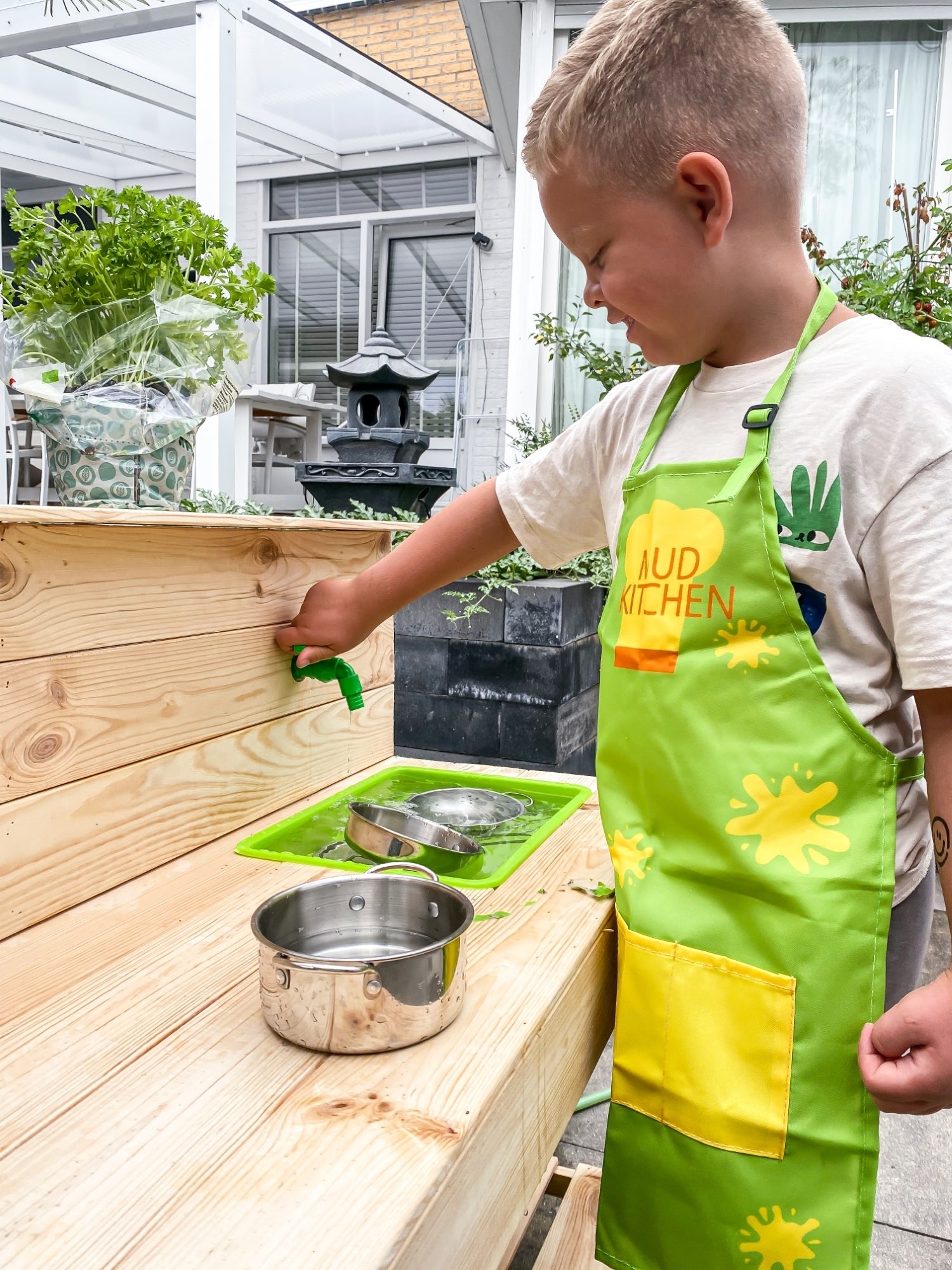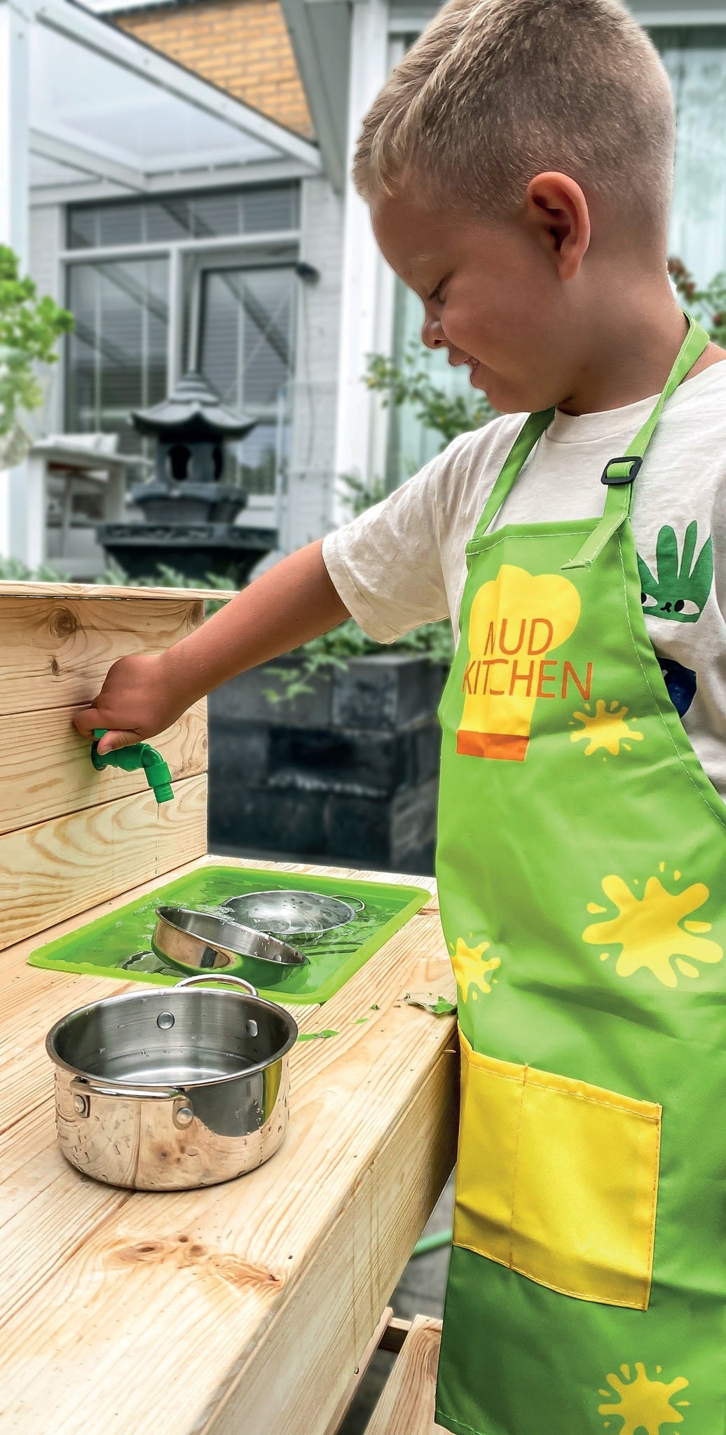This cheerfully waterproof printed mud kitchen apron is a must have for every mud kitchen chef.- waterproof- cheerful print- adjustable neck strap- packed on headercard with eurolock