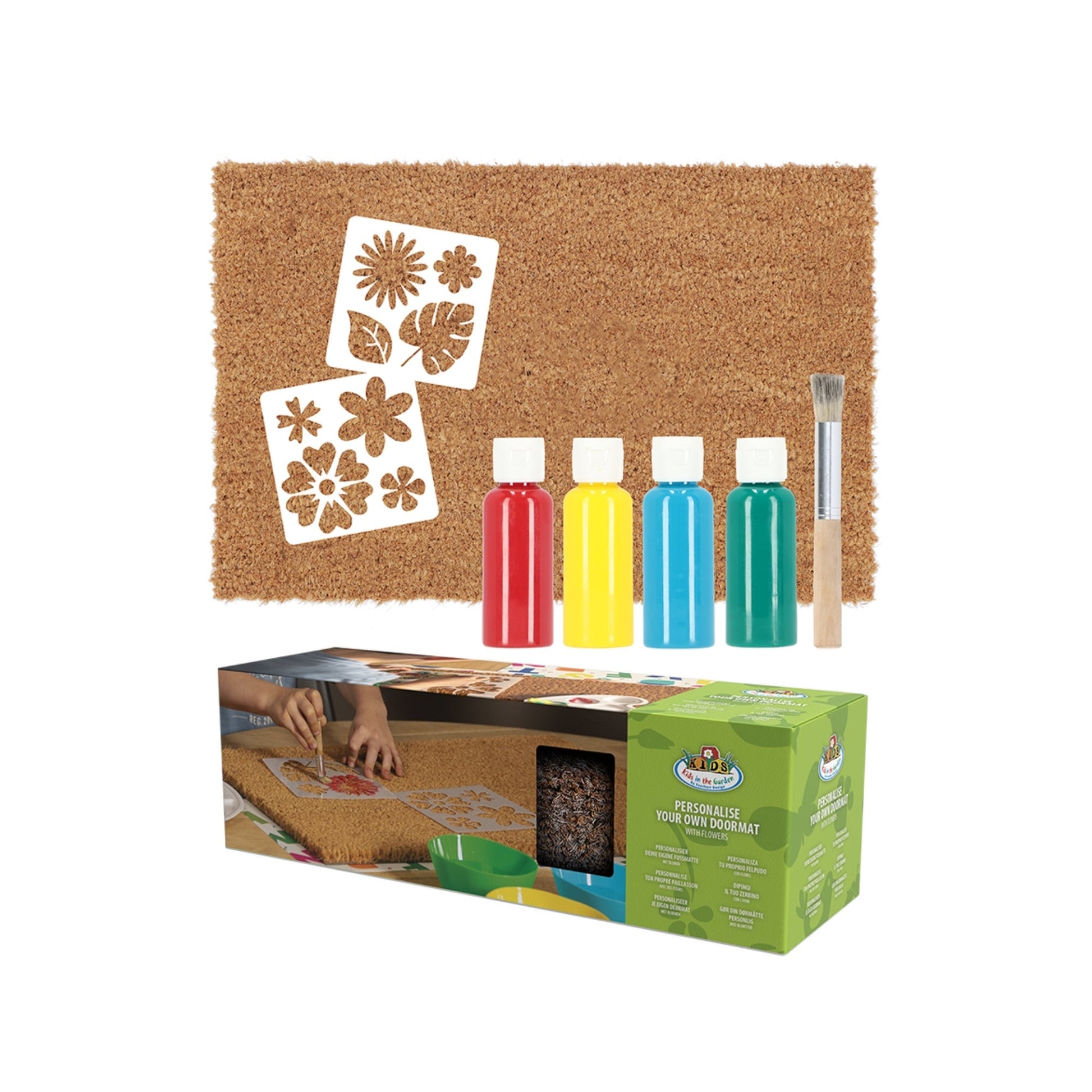 Nice doormats are available anywhere but is more fun to personalise it yourself. This set contains of a doormat, several stencil sheets, a brush and doormat paint. Wit a little imagination and these materials, the most beautiful personalised doormats can be created!- with stencil sheets- including brush and paint- stimulates creativity