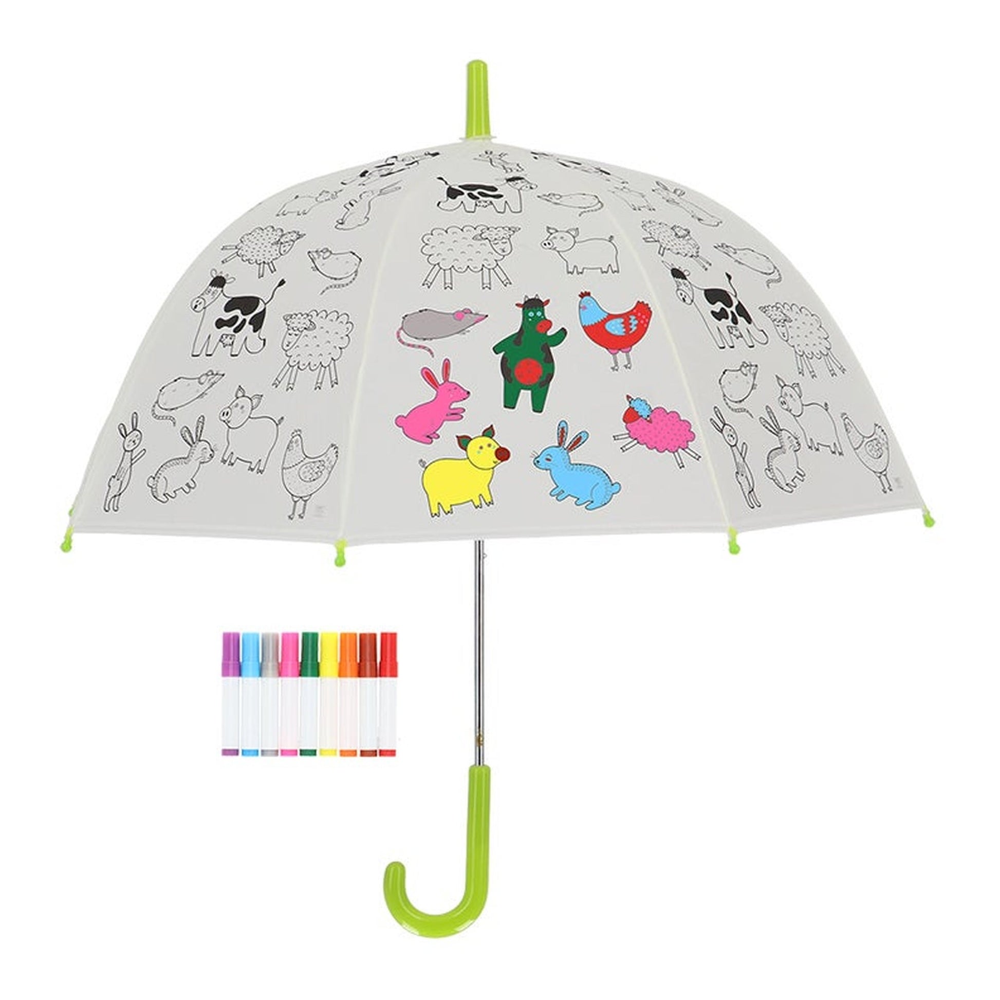 Make going out for a walk in the rain a joy! Colour in this 'Paint it Yourself' umbrella decorated with farmyard animals any way you want! The umbrella comes with markers that can be used to colour in the umbrella. Let children be creative. Its size and use are especially created for children's hands. - CE certified- suitable for 3 years and up