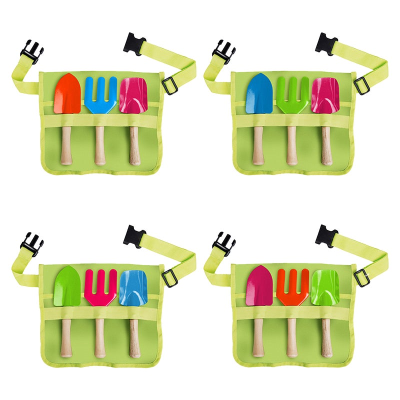 This toolbelt set is a must have for little gardeners. The set consists of a belt, a fork, a shovel and a spade. The handles are made from FSC certified wood.- assortment of 4- handles made from FSC® certified wood- especially designed for children- cheerful colour