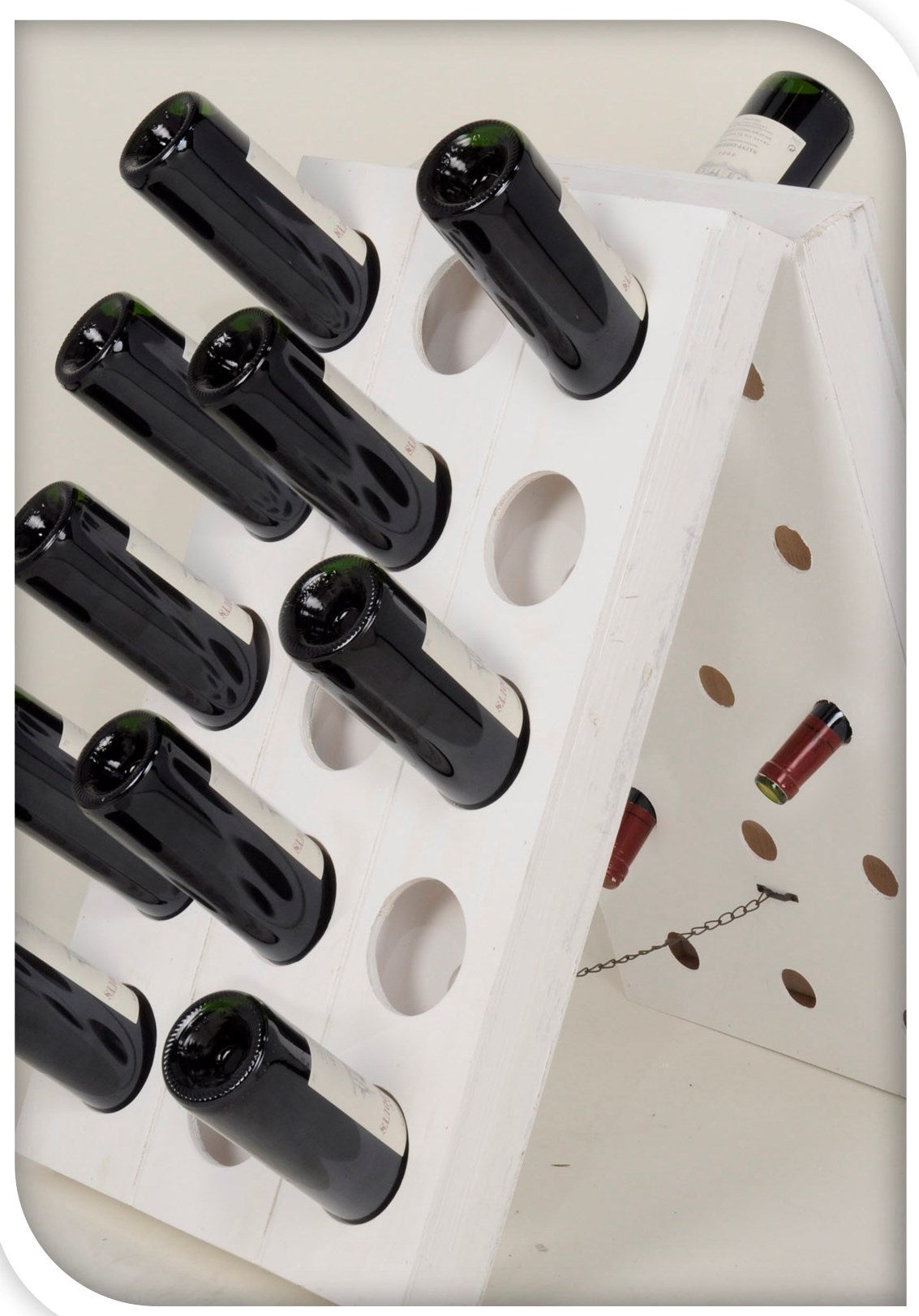 50% Off, Ce8100460 , Wine Bottle Holder, Double Side, Wood, Holds 30 Bottles, White.